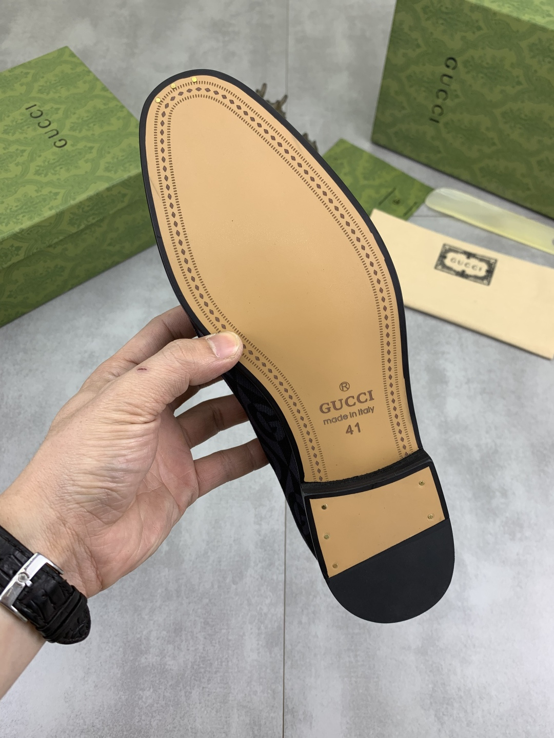 This shoes is AAAAA 1:1 quality (superb). Materials used are identical to the original ones. Gucci trademark marks are indistinguishable to the authentic. Photos take by actual shoes, what you receive will be 100% same with our photos.