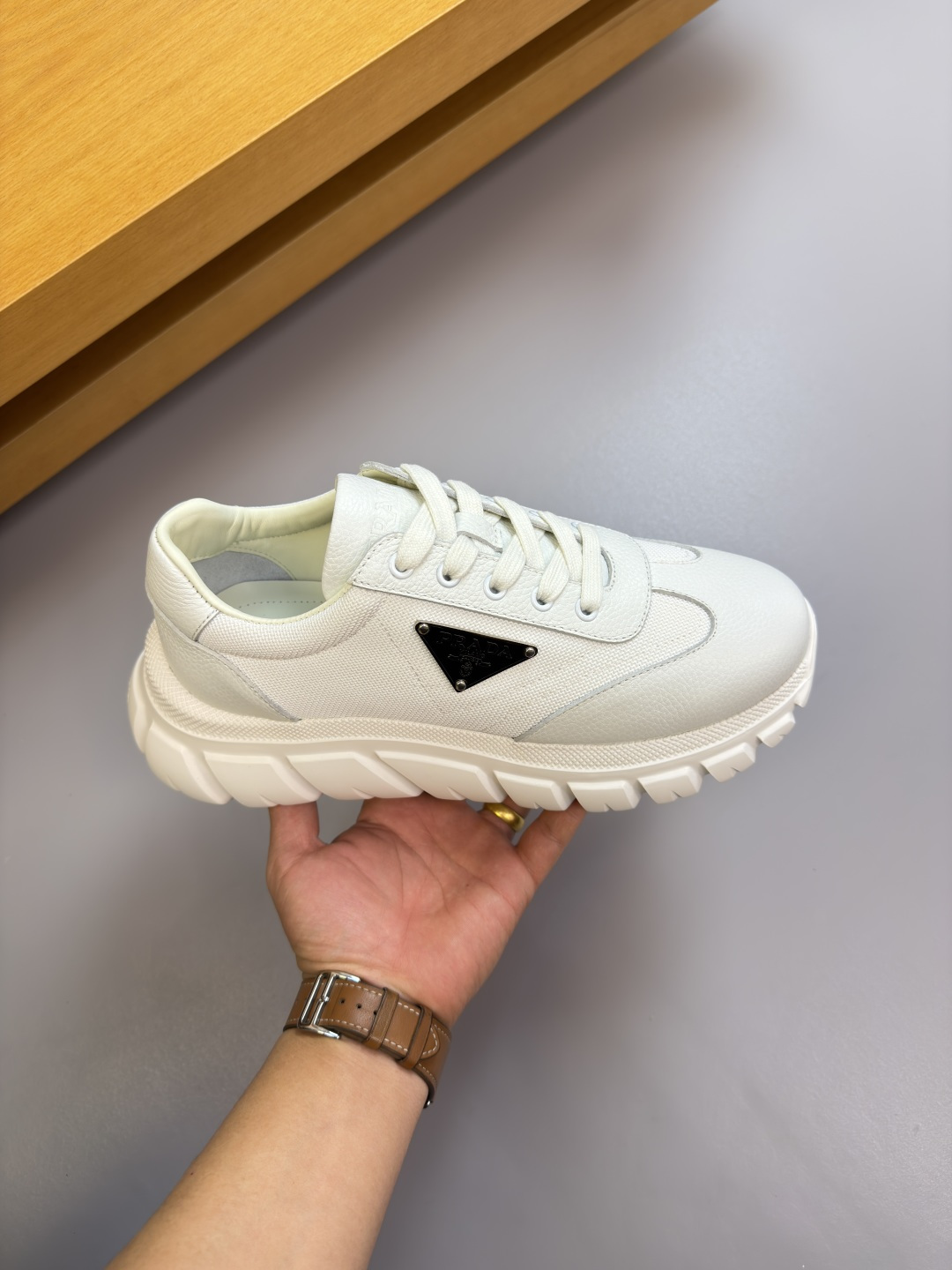 This shoes is AAAAA 1:1 quality (superb). Materials used are identical to the original ones. Prada trademark marks are indistinguishable to the authentic. Photos take by actual shoes, what you receive will be 100% same with our photos.