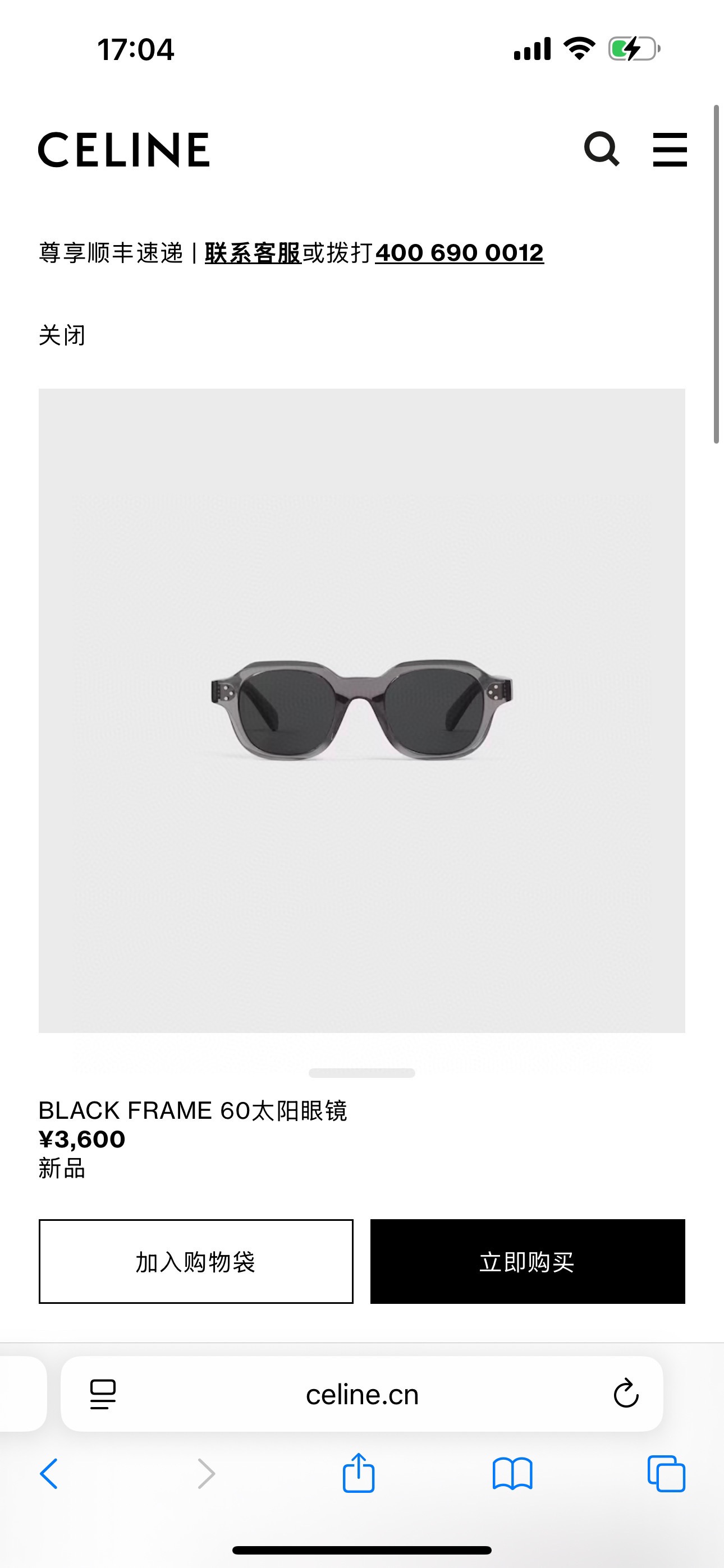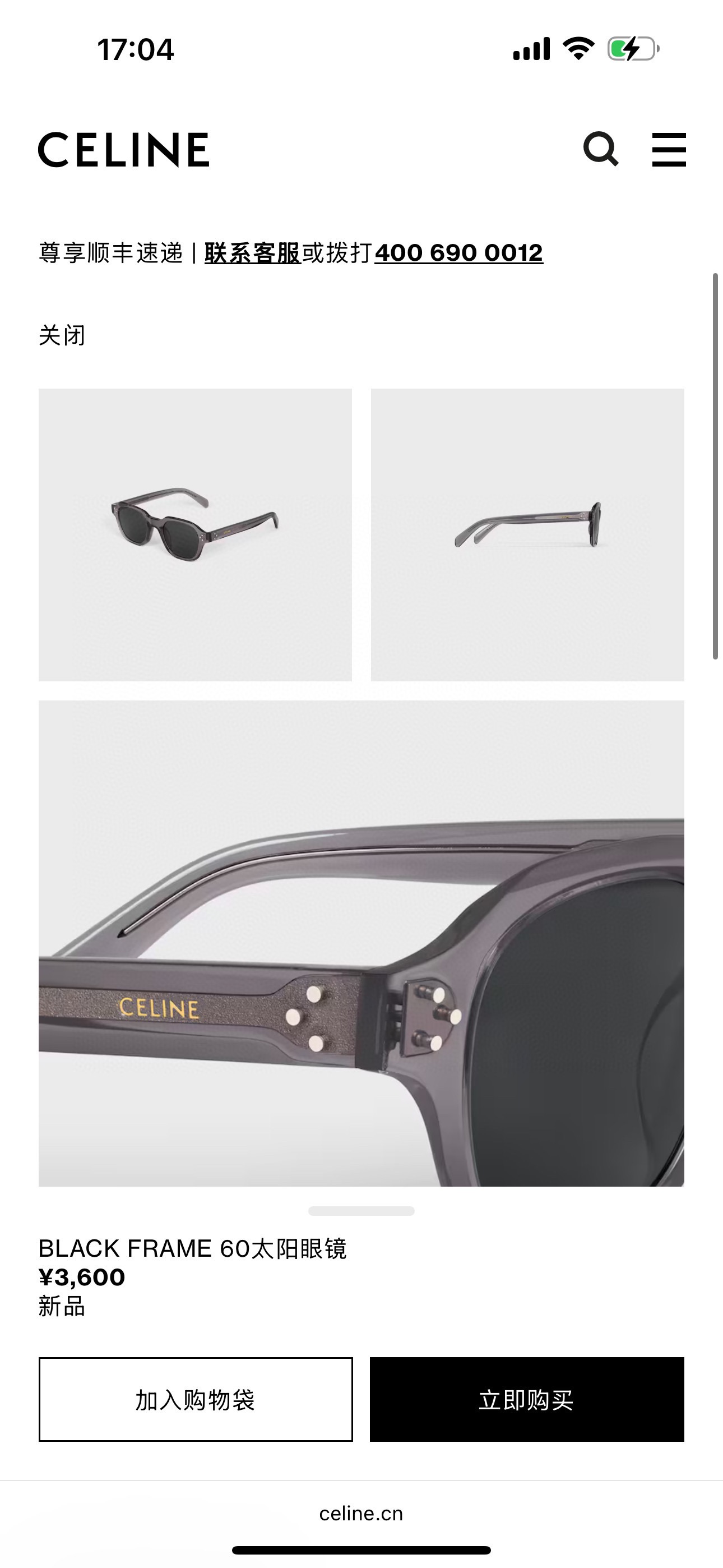 NO:4161989. The sunglasses is from Celine designer.