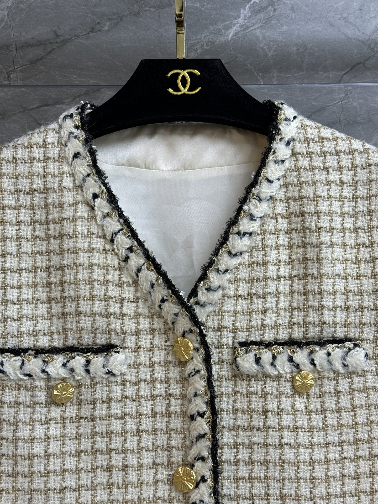This clothes is AAAAA 1:1 quality (superb). Materials used are identical to the original ones. Chanel trademark marks are indistinguishable to the authentic. Photos take by actual clothes, what you receive will be 100% same with our photos.