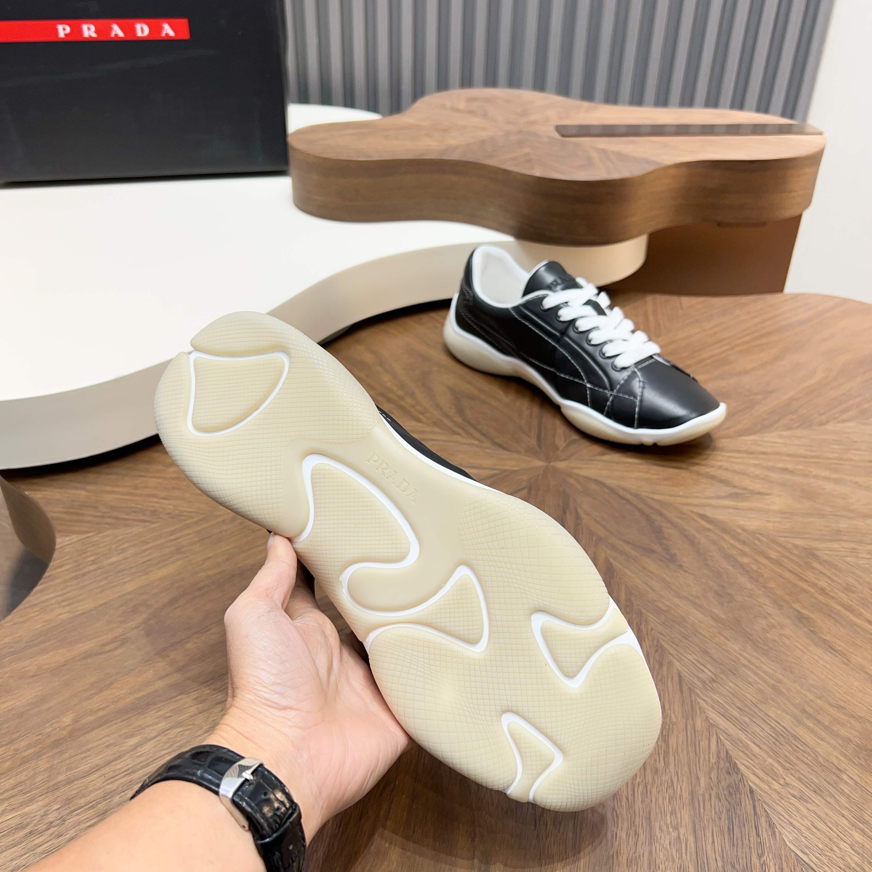 This shoes is AAAAA 1:1 quality (superb). Materials used are identical to the original ones. Prada trademark marks are indistinguishable to the authentic. Photos take by actual shoes, what you receive will be 100% same with our photos.