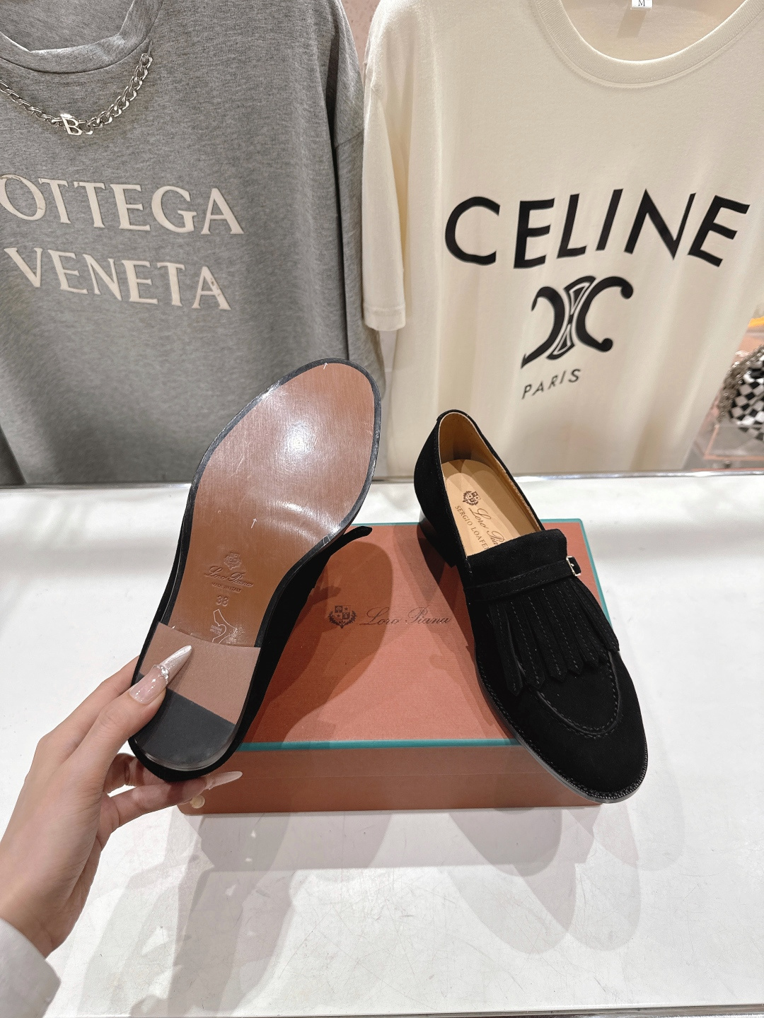 NO:4164608. The shoes is from Loro Piana designer.
