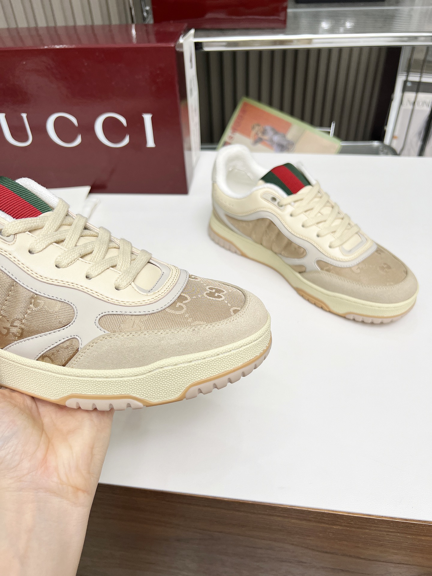 This shoes is AAAAA 1:1 quality (superb). Materials used are identical to the original ones. Gucci trademark marks are indistinguishable to the authentic. Photos take by actual shoes, what you receive will be 100% same with our photos.