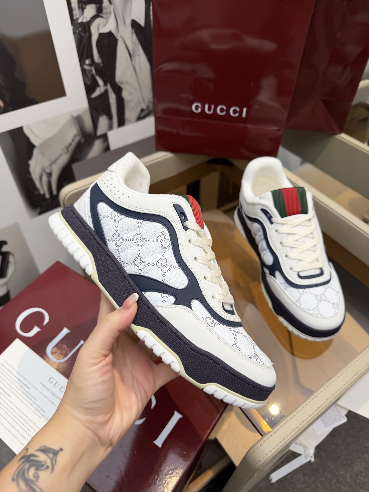 This shoes is AAAAA 1:1 quality (superb). Materials used are identical to the original ones. Gucci trademark marks are indistinguishable to the authentic. Photos take by actual shoes, what you receive will be 100% same with our photos.