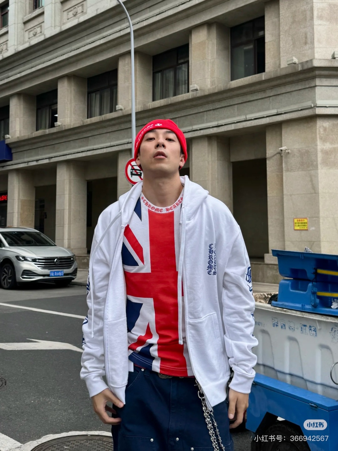 NO:4174675. The clothes is from Chrome Hearts designer.