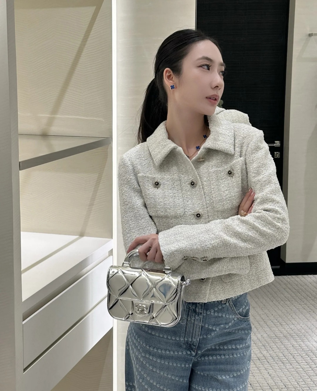 NO:4175340. The clothes is from Chanel designer.