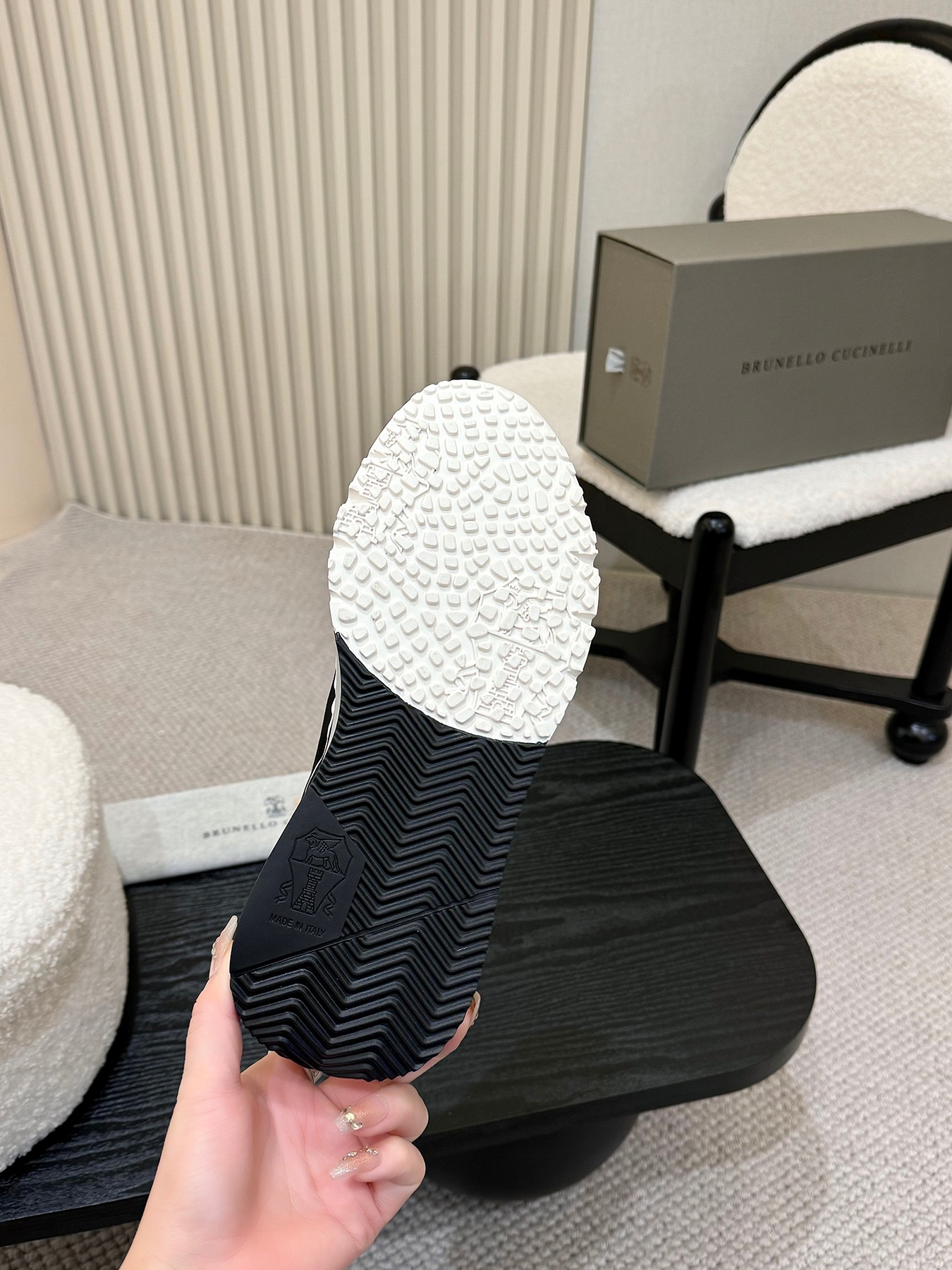 This shoes is AAAAA 1:1 quality (superb). Materials used are identical to the original ones. Brunello Cucinelli trademark marks are indistinguishable to the authentic. Photos take by actual shoes, what you receive will be 100% same with our photos.