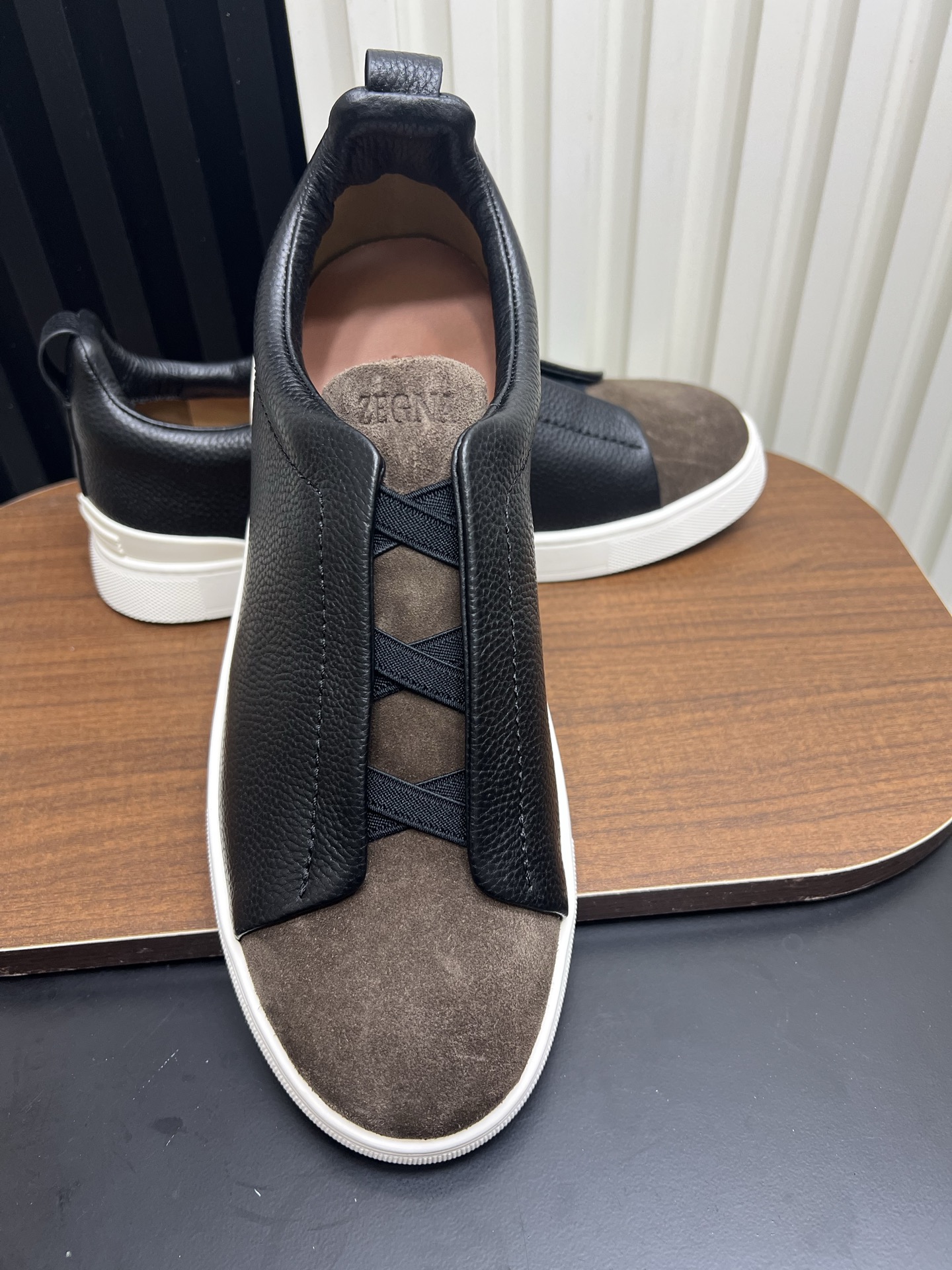 This shoes is AAAAA 1:1 quality (superb). Materials used are identical to the original ones. Zegna trademark marks are indistinguishable to the authentic. Photos take by actual shoes, what you receive will be 100% same with our photos.