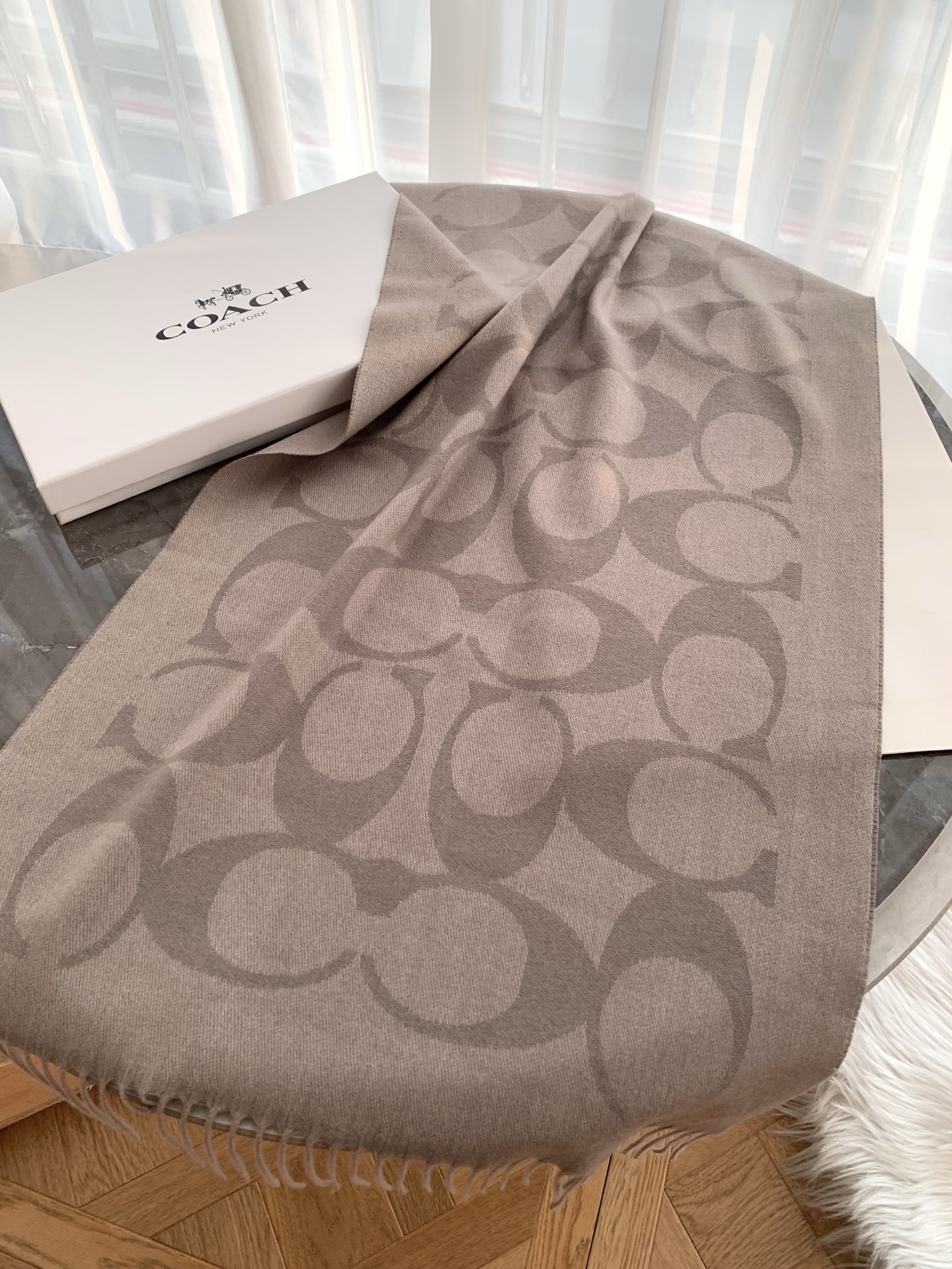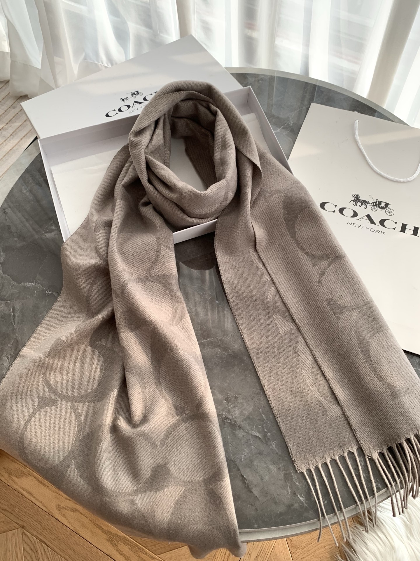 NO:4234704. The scarf is from Coach designer.