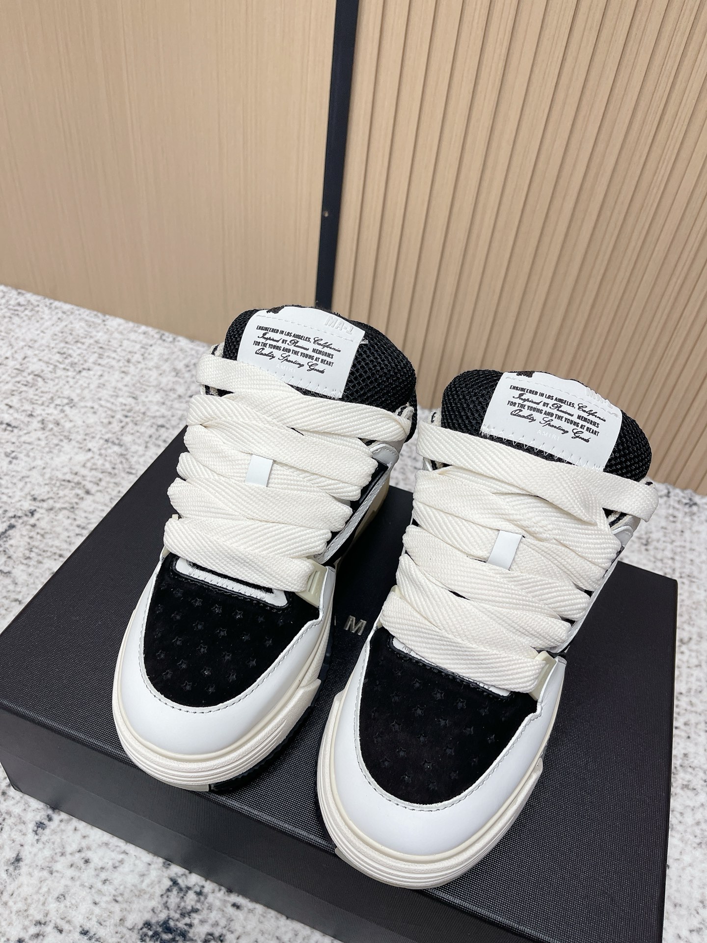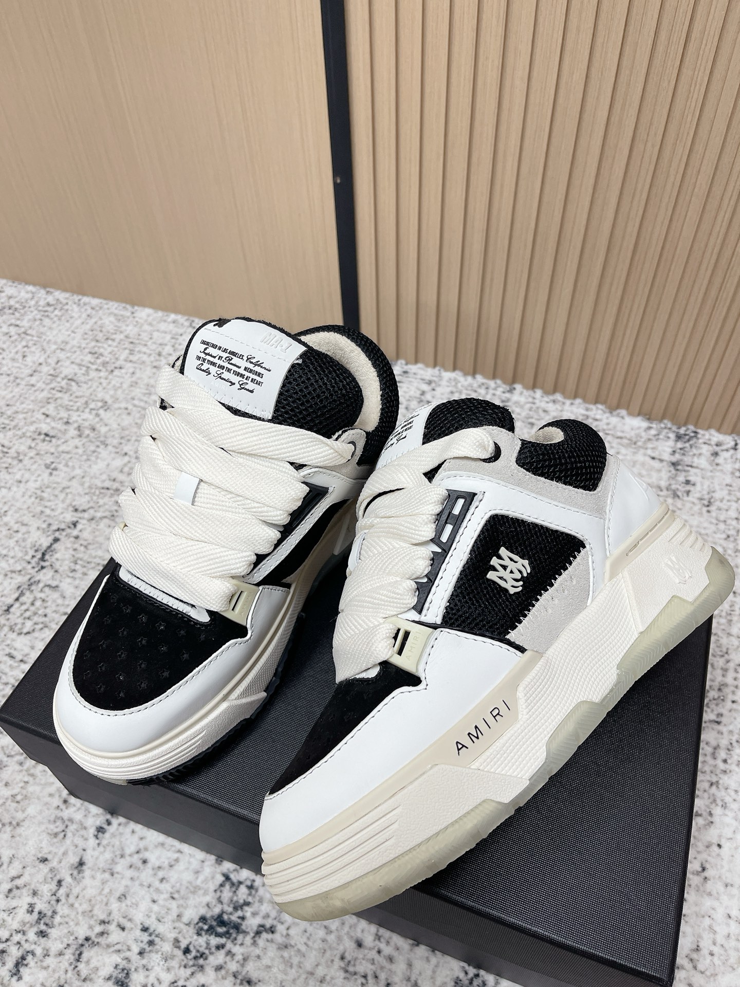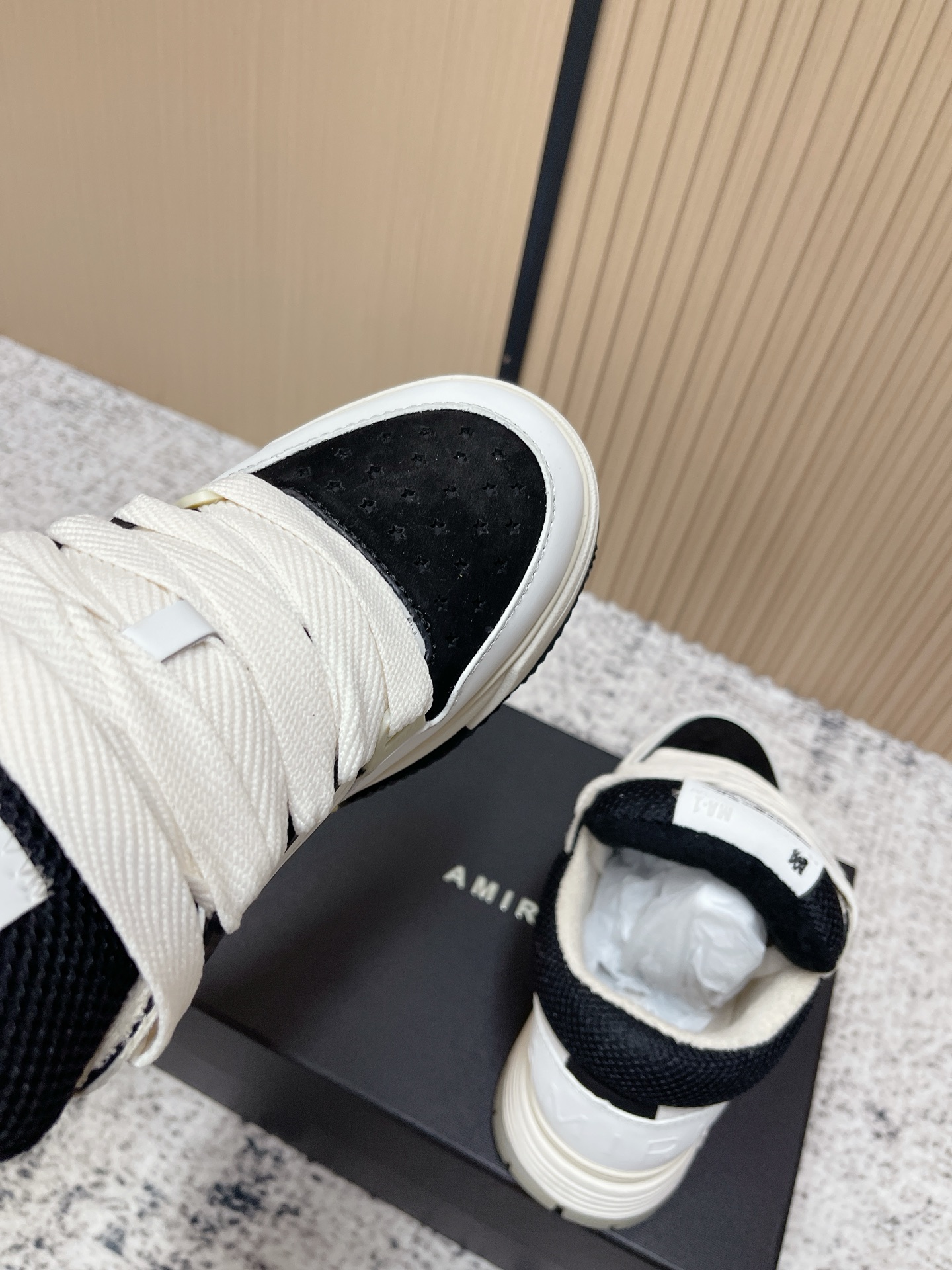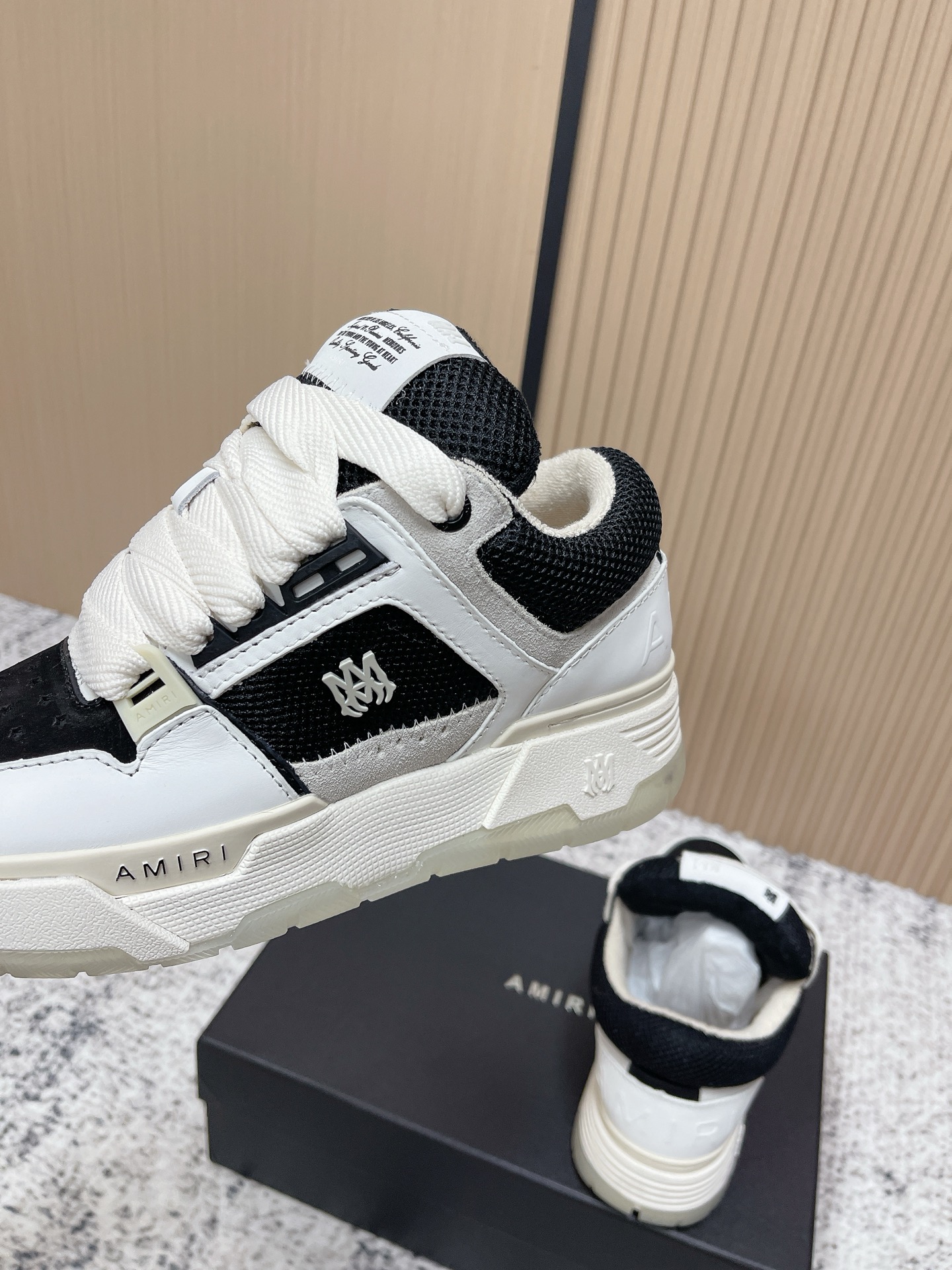 This shoes is AAAAA 1:1 quality (superb). Materials used are identical to the original ones. Amiri trademark marks are indistinguishable to the authentic. Photos take by actual shoes, what you receive will be 100% same with our photos.