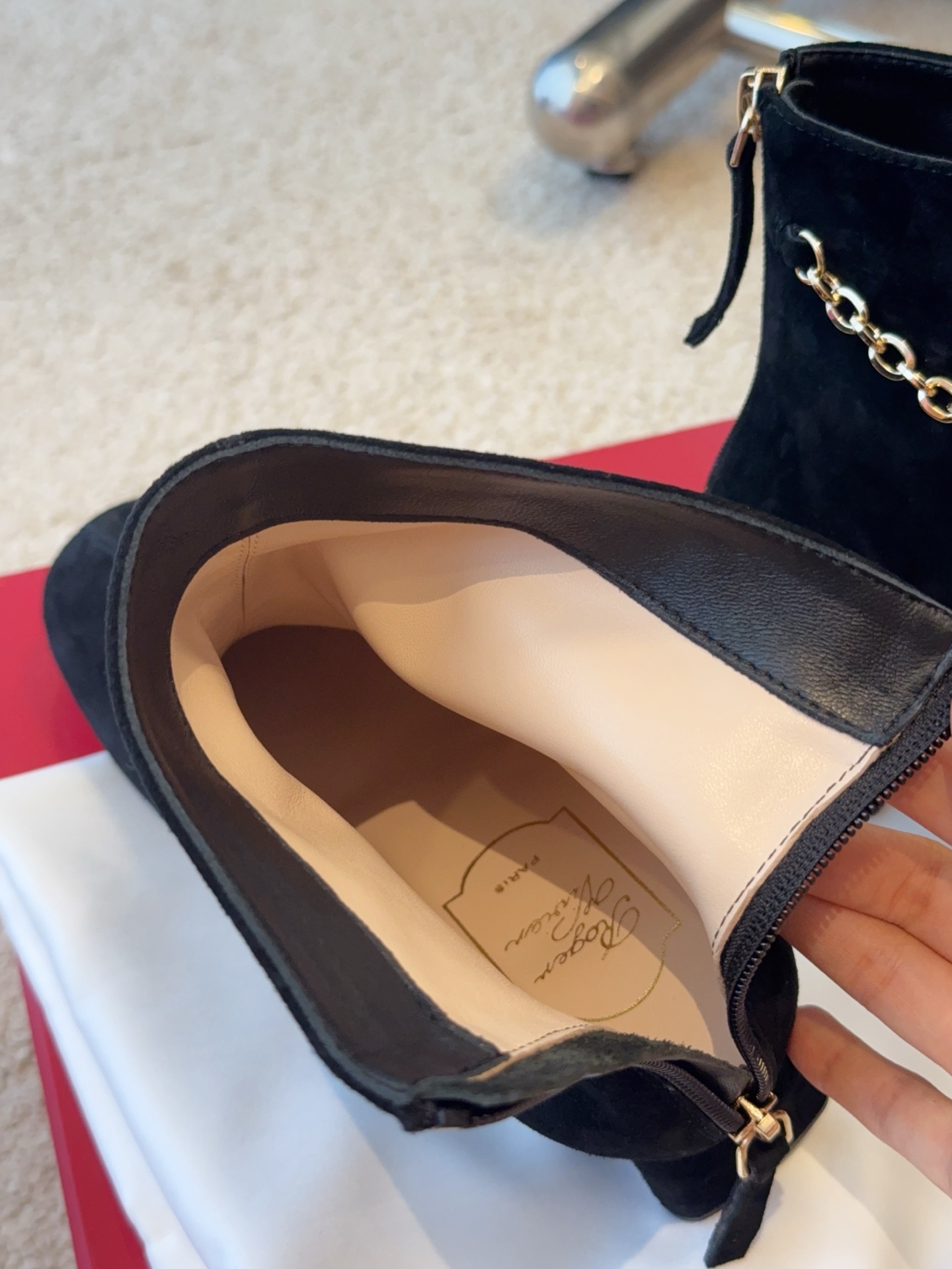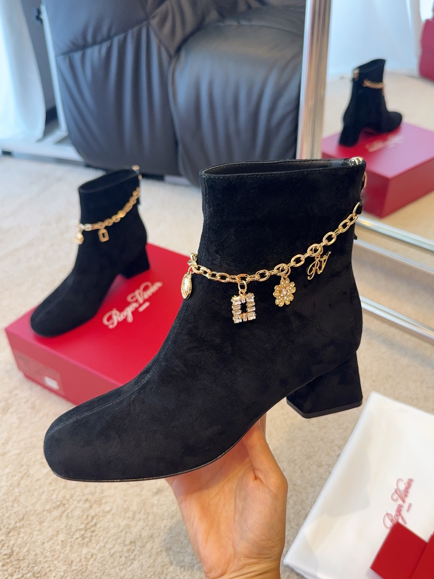 This shoes is AAAAA 1:1 quality (superb). Materials used are identical to the original ones. Roger Vivier trademark marks are indistinguishable to the authentic. Photos take by actual shoes, what you receive will be 100% same with our photos.