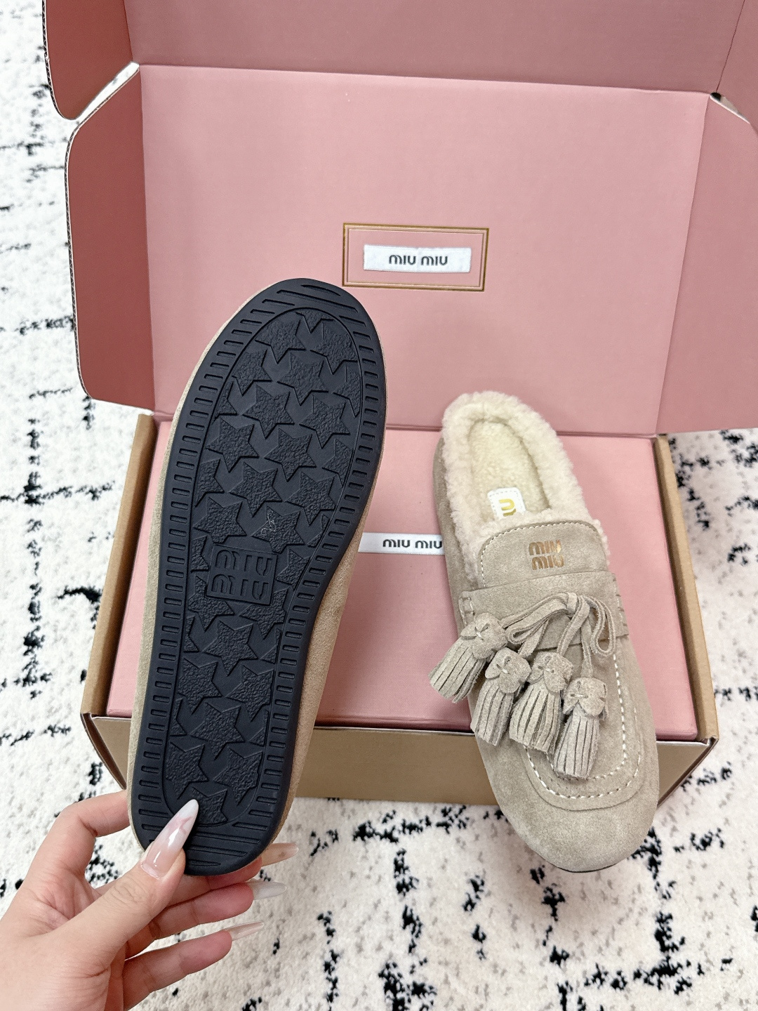 This shoes is AAAAA 1:1 quality (superb). Materials used are identical to the original ones. Miu Miu trademark marks are indistinguishable to the authentic. Photos take by actual shoes, what you receive will be 100% same with our photos.
