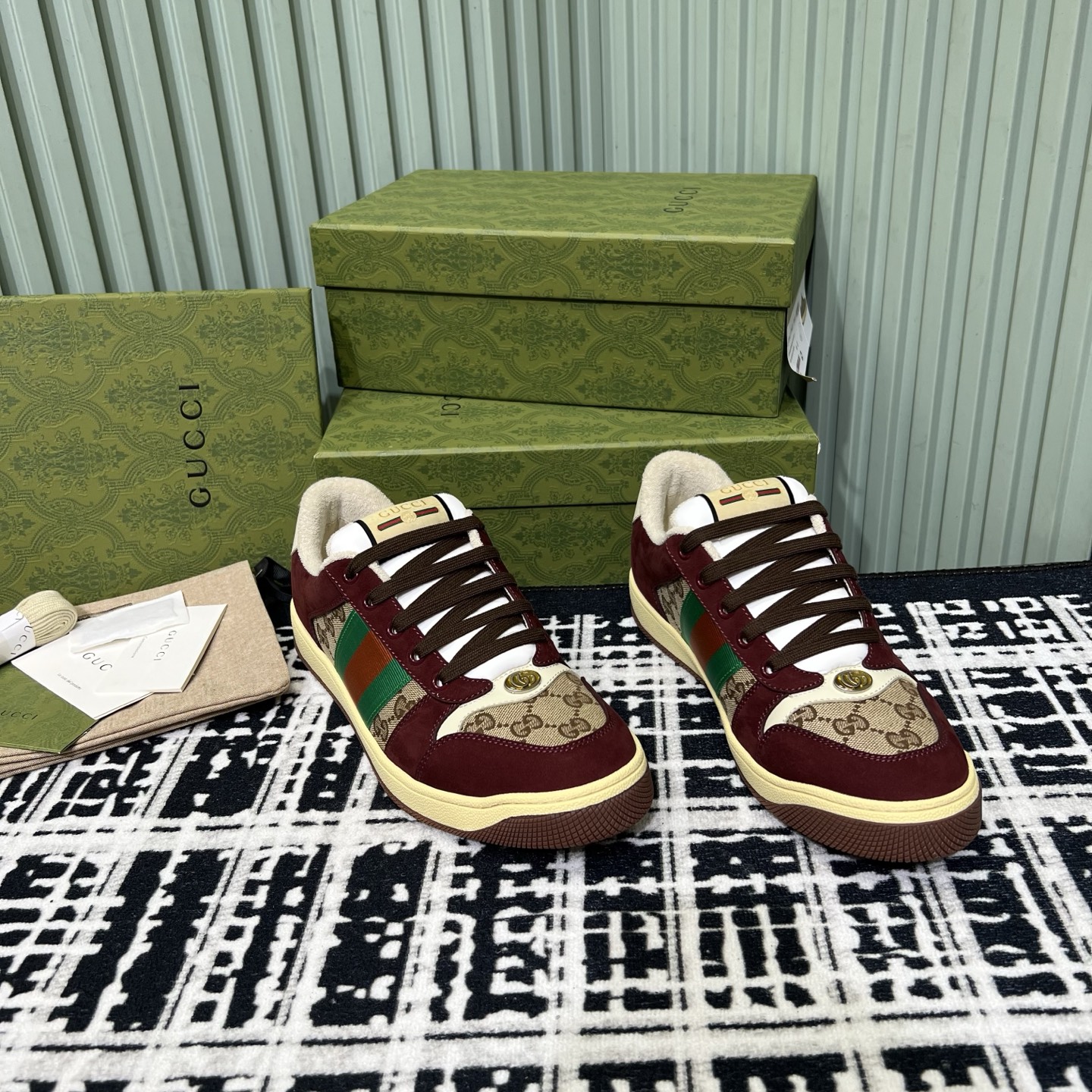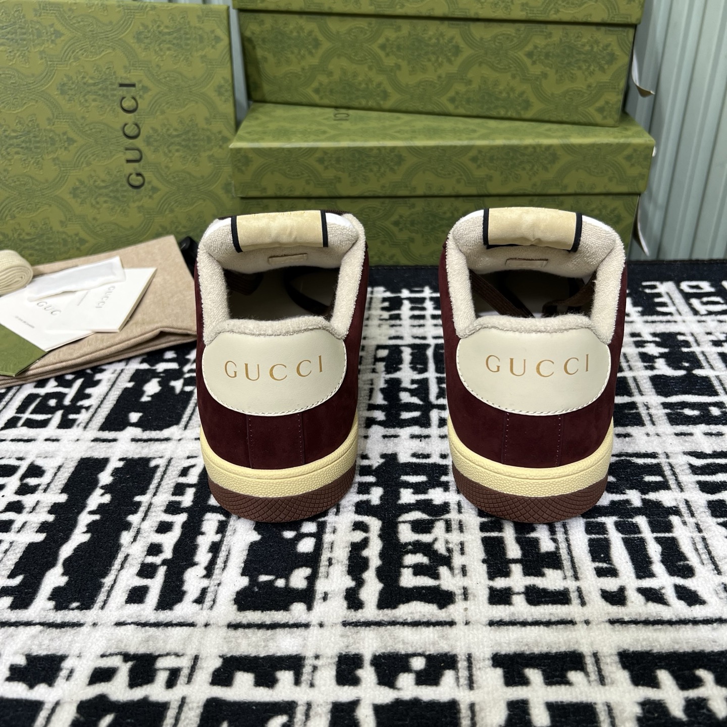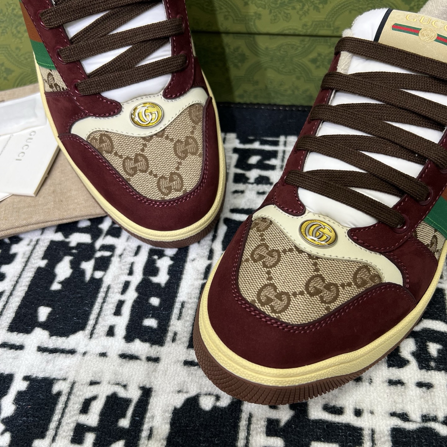 This shoes is AAAAA 1:1 quality (superb). Materials used are identical to the original ones. Gucci trademark marks are indistinguishable to the authentic. Photos take by actual shoes, what you receive will be 100% same with our photos.