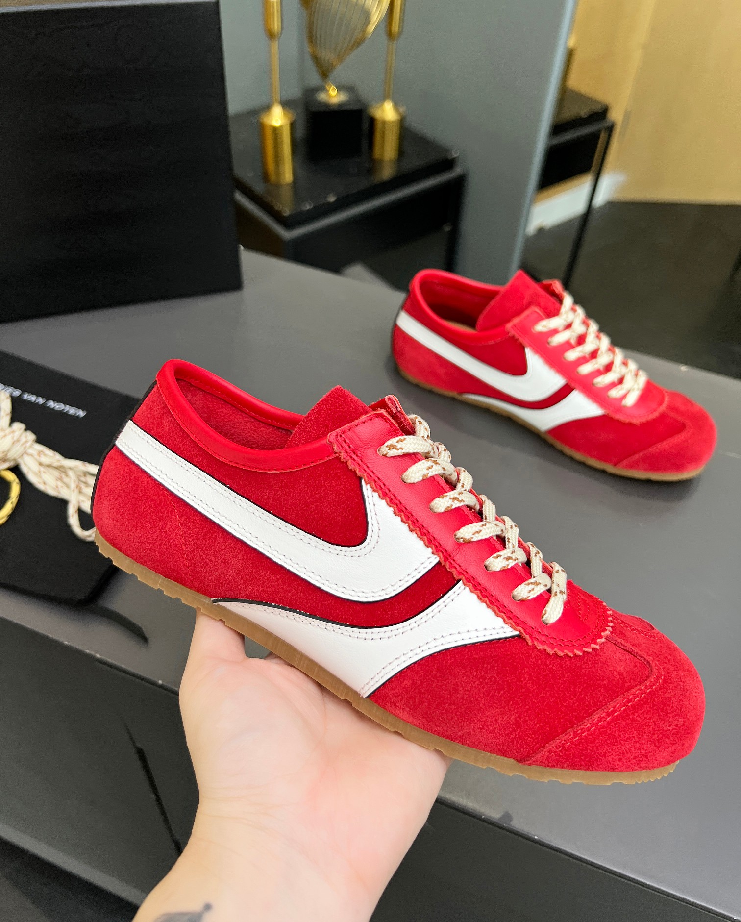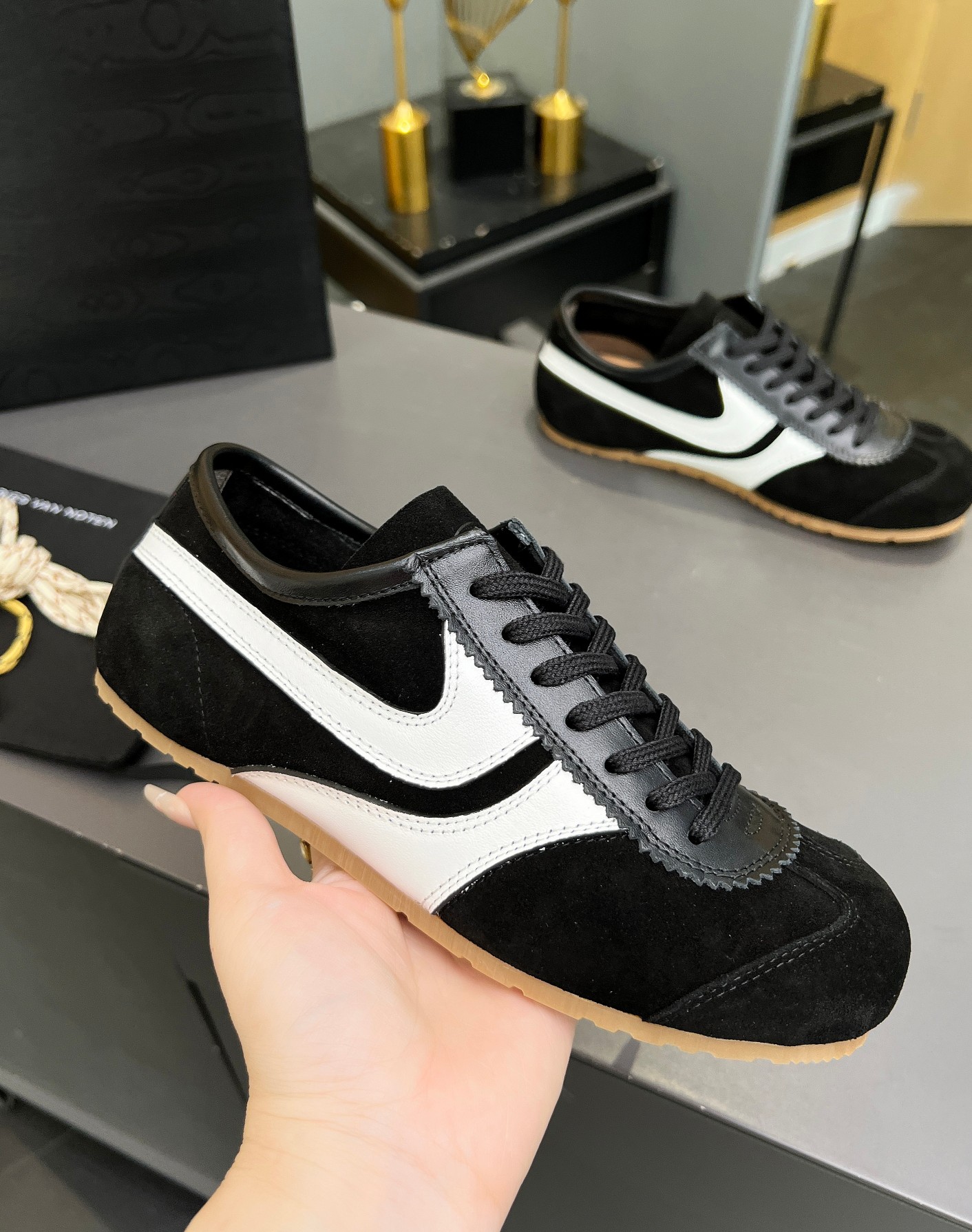 This shoes is AAAAA 1:1 quality (superb). Materials used are identical to the original ones. trademark marks are indistinguishable to the authentic. Photos take by actual shoes, what you receive will be 100% same with our photos.