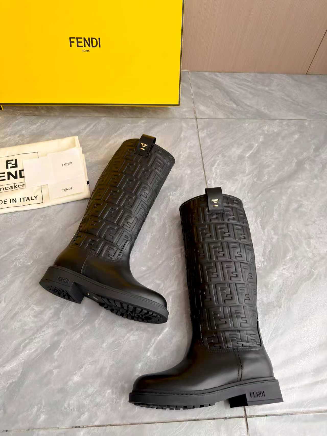 This shoes is AAAAA 1:1 quality (superb). Materials used are identical to the original ones. Fendi trademark marks are indistinguishable to the authentic. Photos take by actual shoes, what you receive will be 100% same with our photos.