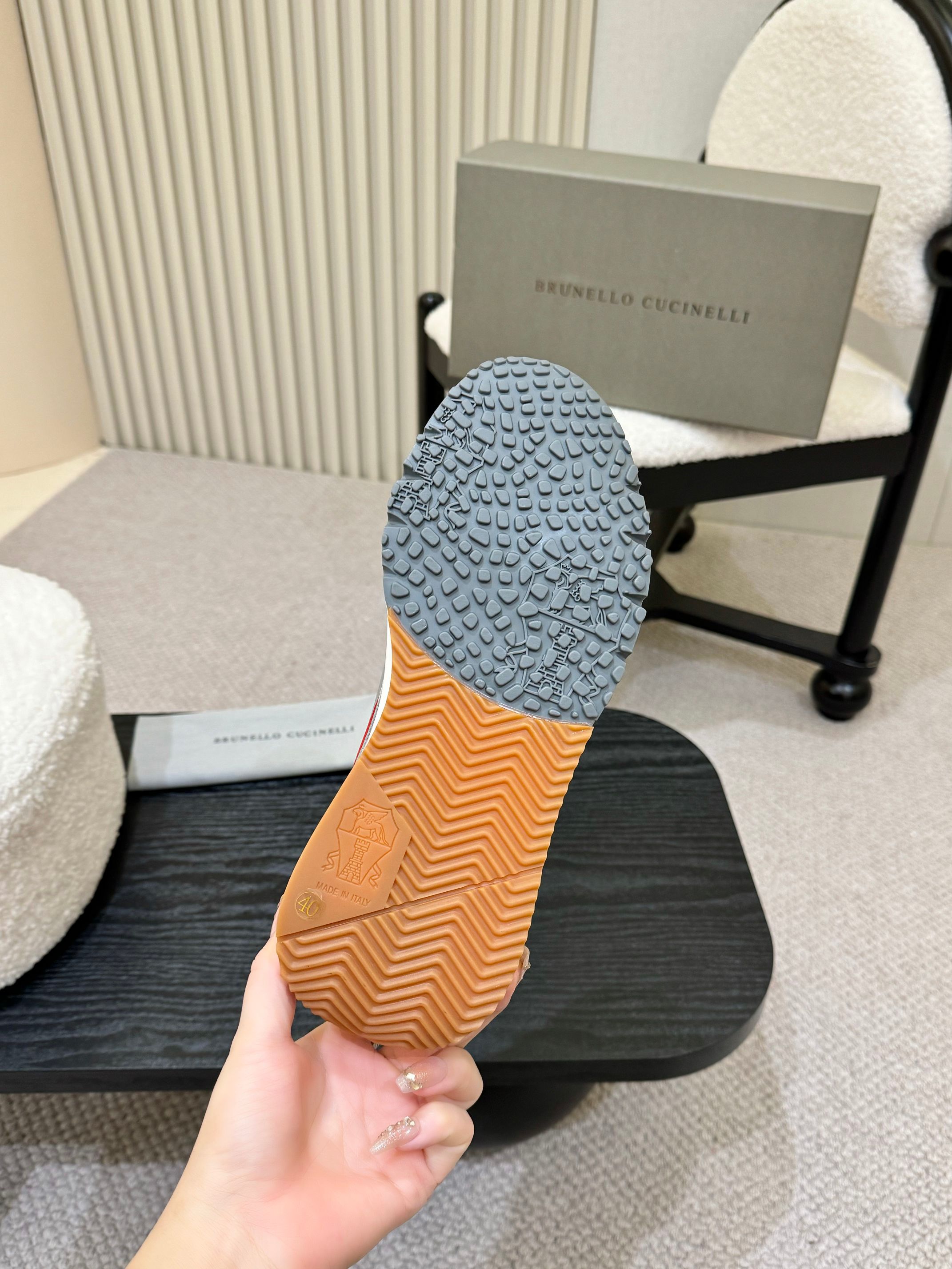 This shoes is AAAAA 1:1 quality (superb). Materials used are identical to the original ones. Brunello Cucinelli trademark marks are indistinguishable to the authentic. Photos take by actual shoes, what you receive will be 100% same with our photos.