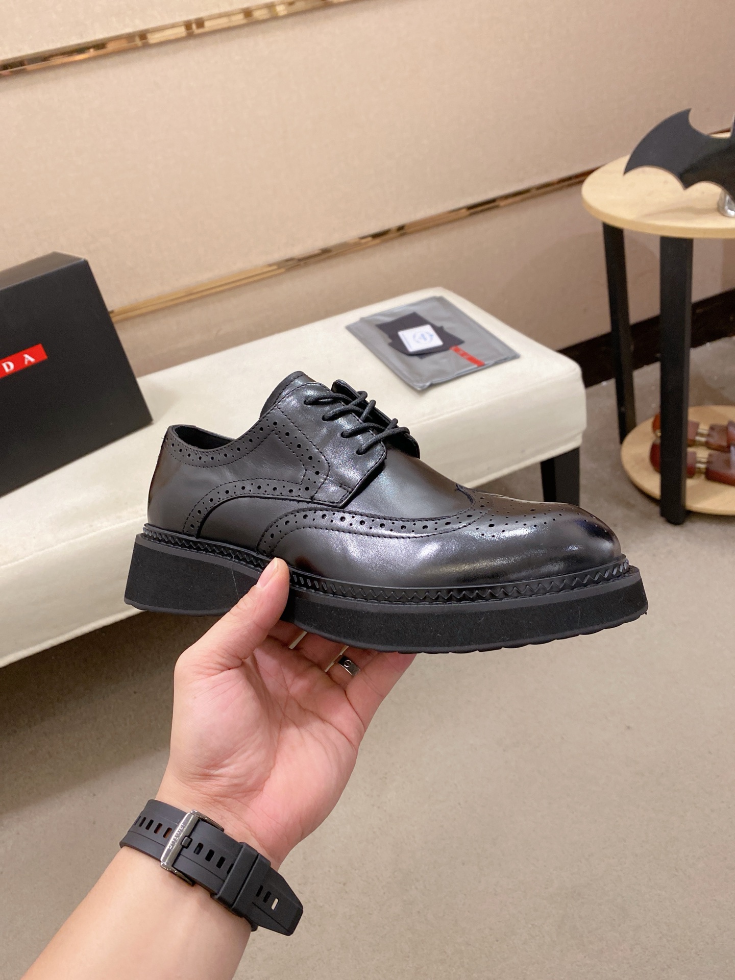 This shoes is AAAAA 1:1 quality (superb). Materials used are identical to the original ones. Prada trademark marks are indistinguishable to the authentic. Photos take by actual shoes, what you receive will be 100% same with our photos.