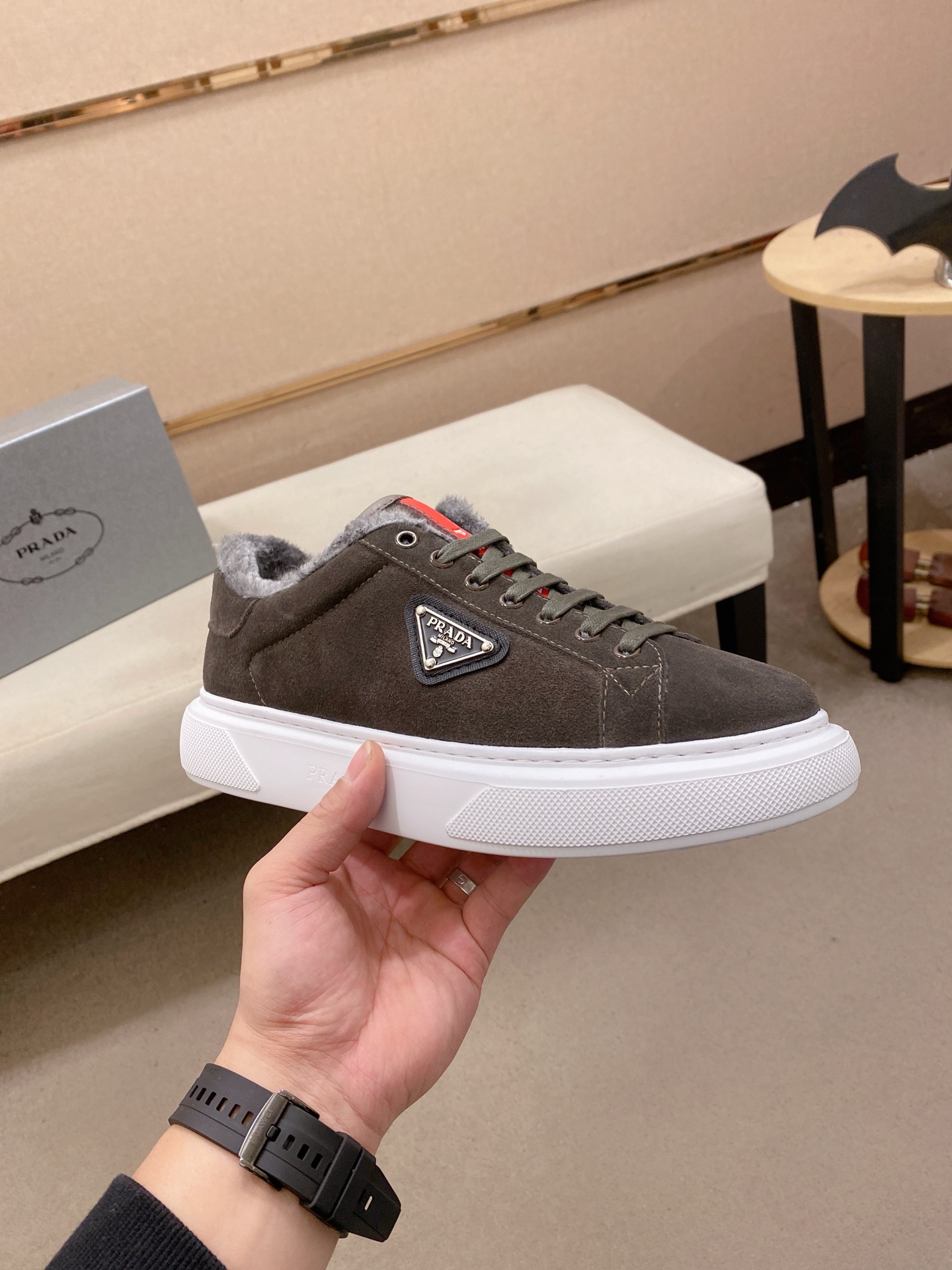 This shoes is AAAAA 1:1 quality (superb). Materials used are identical to the original ones. Prada trademark marks are indistinguishable to the authentic. Photos take by actual shoes, what you receive will be 100% same with our photos.