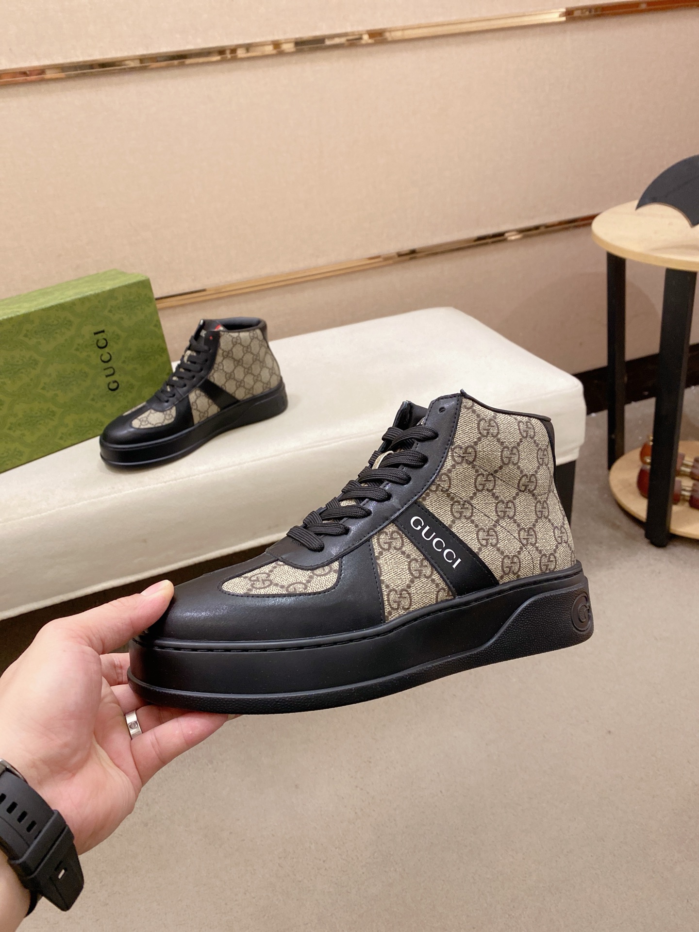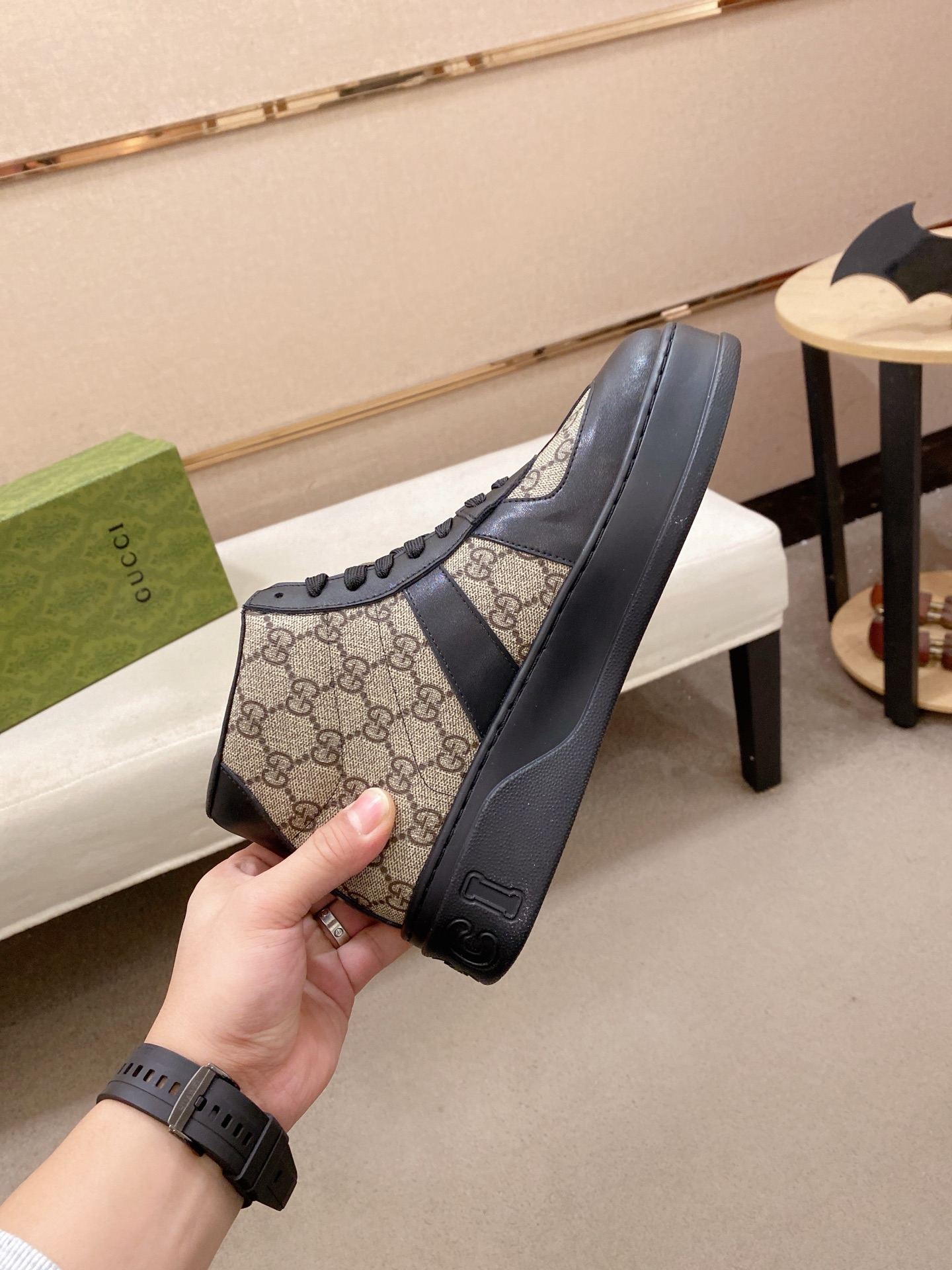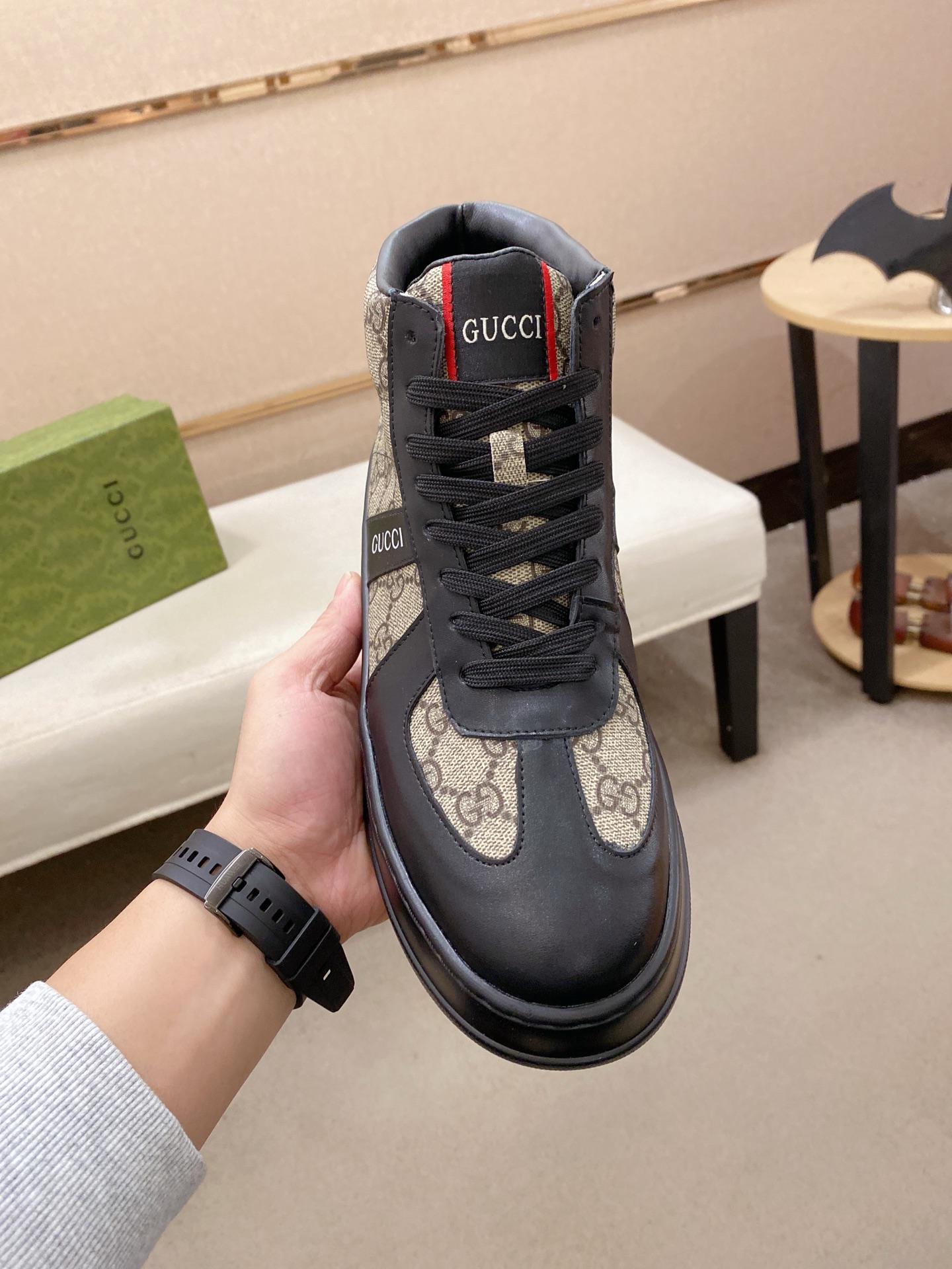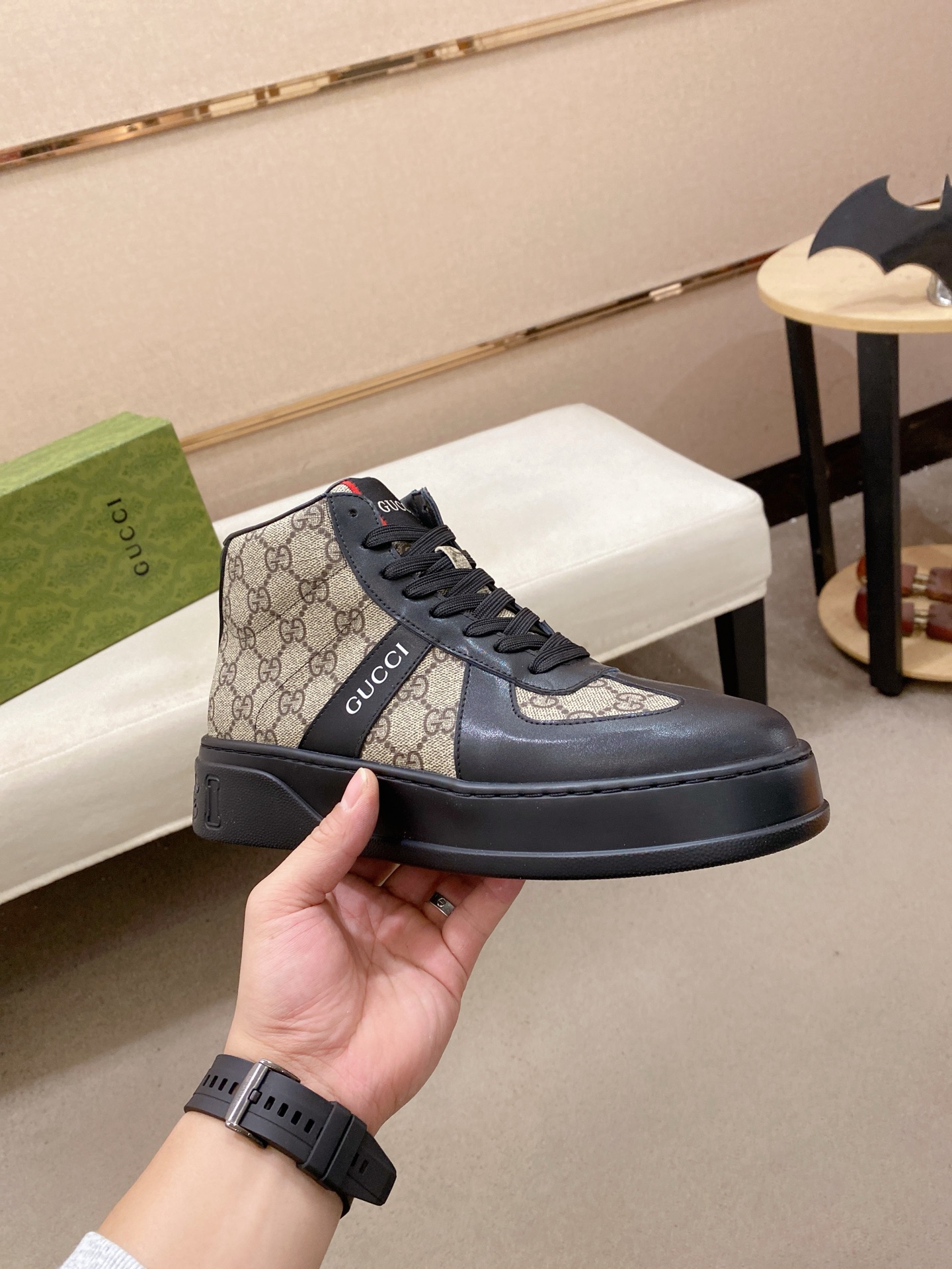 This shoes is AAAAA 1:1 quality (superb). Materials used are identical to the original ones. Gucci trademark marks are indistinguishable to the authentic. Photos take by actual shoes, what you receive will be 100% same with our photos.
