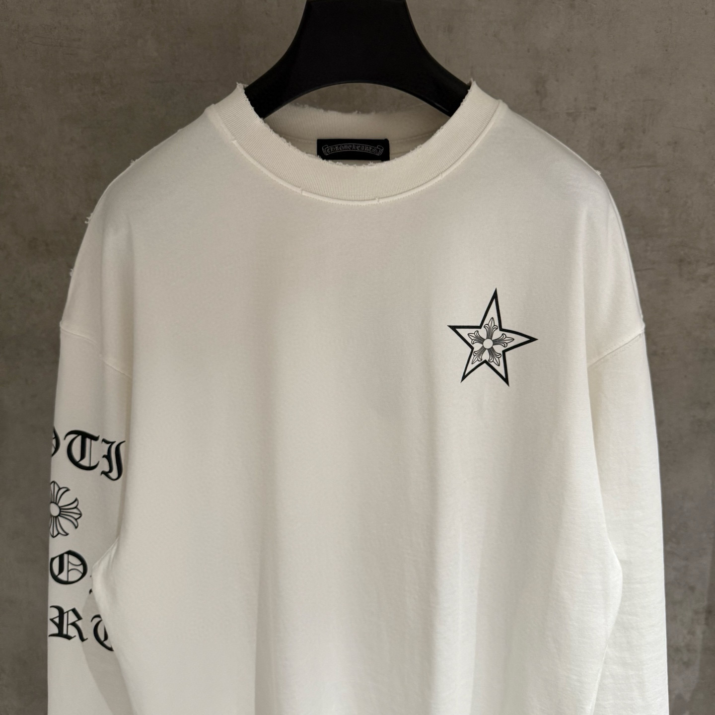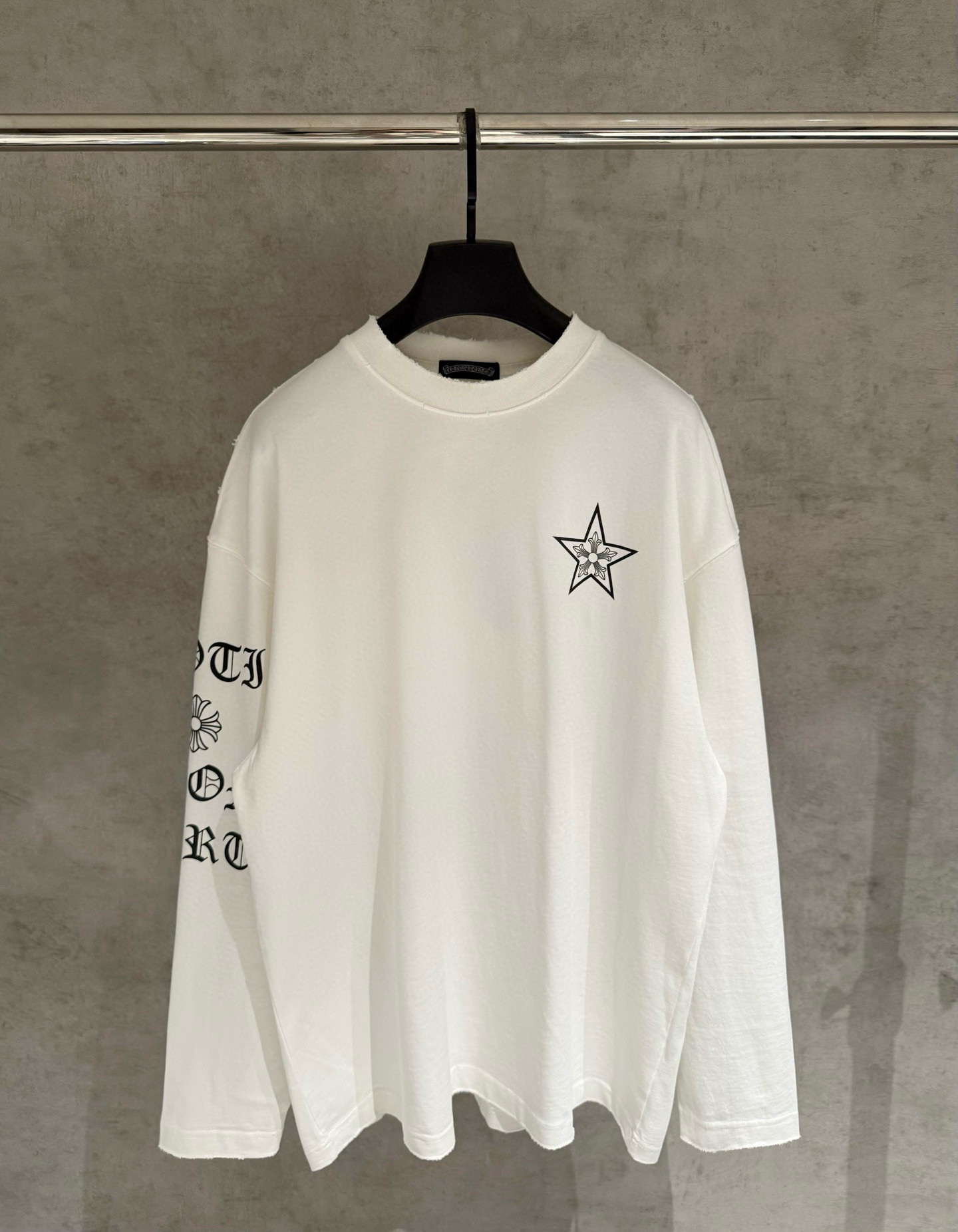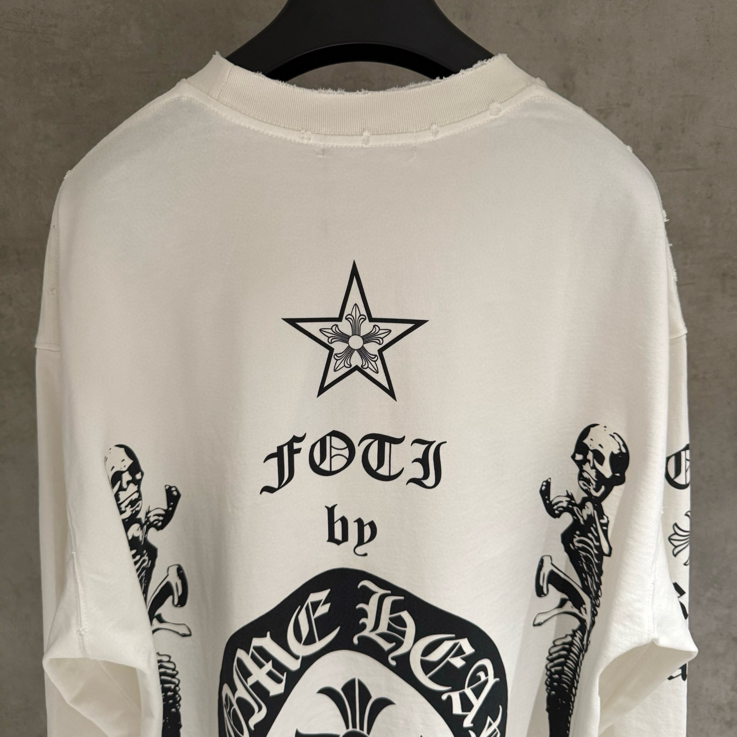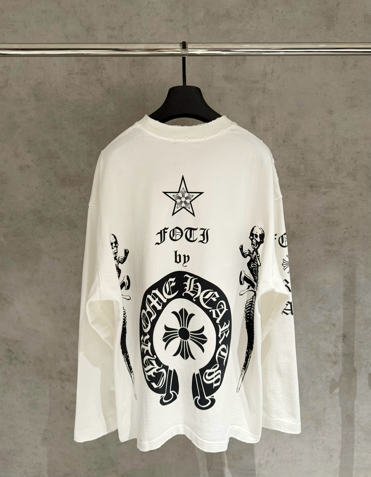 NO:4265087. The clothes is from Chrome Hearts designer.