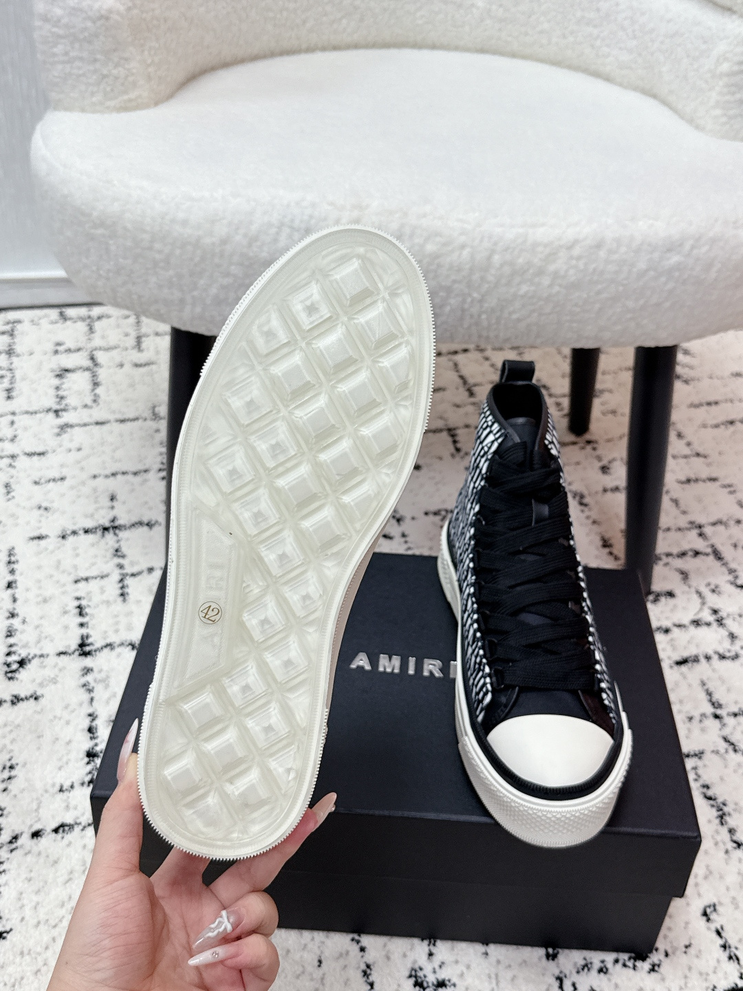 This shoes is AAAAA 1:1 quality (superb). Materials used are identical to the original ones. AMIRI trademark marks are indistinguishable to the authentic. Photos take by actual shoes, what you receive will be 100% same with our photos.
