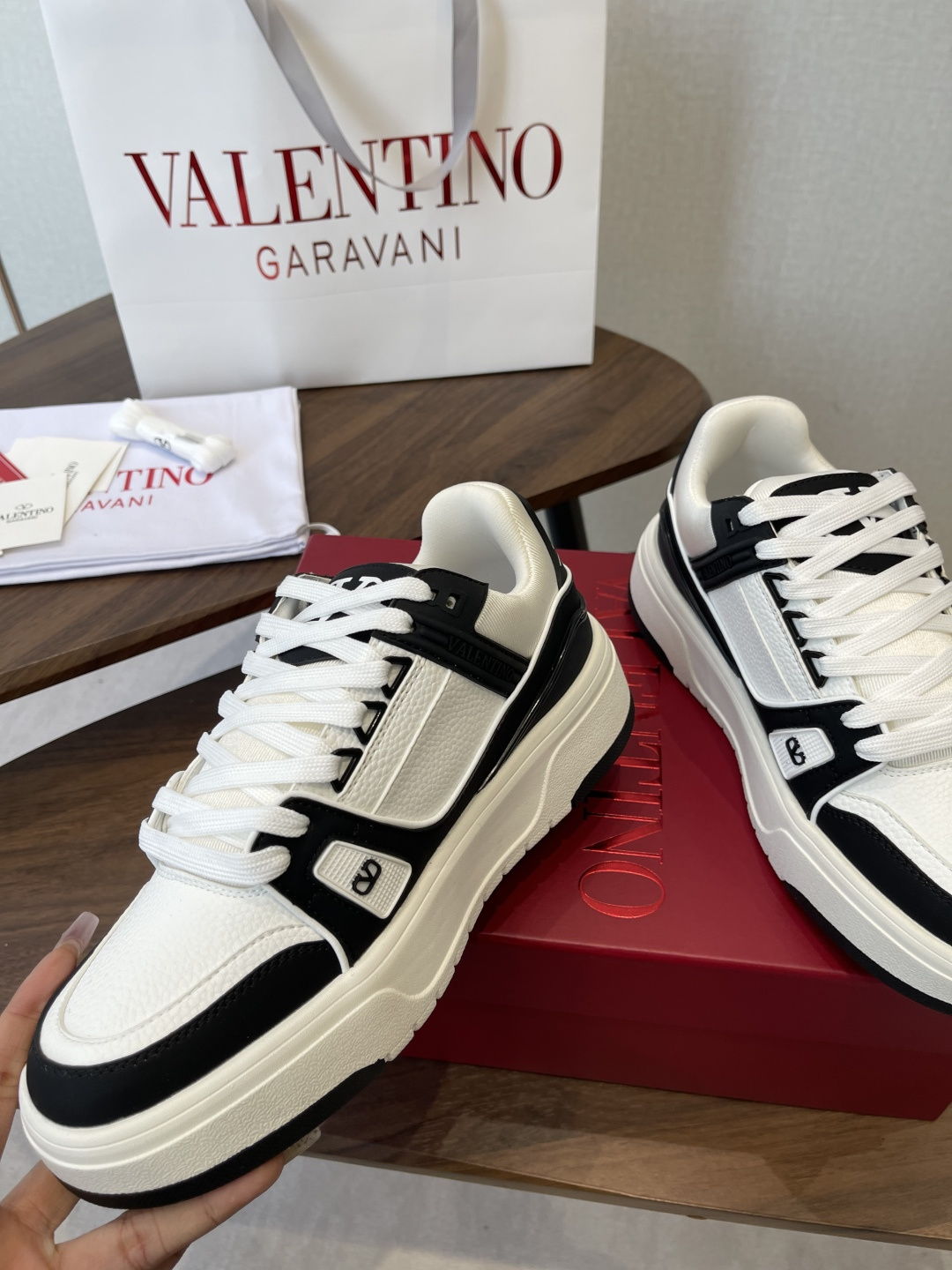 This shoes is AAAAA 1:1 quality (superb). Materials used are identical to the original ones. Valentino trademark marks are indistinguishable to the authentic. Photos take by actual shoes, what you receive will be 100% same with our photos.