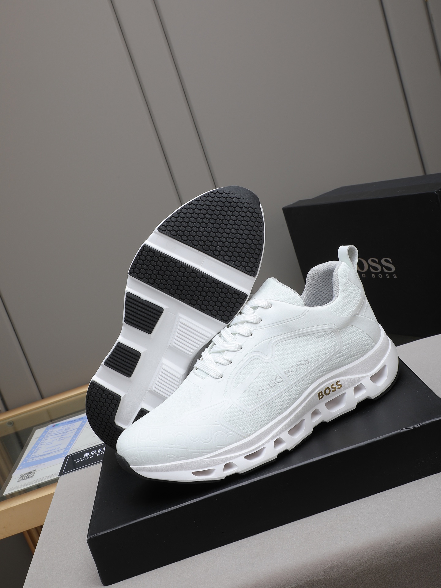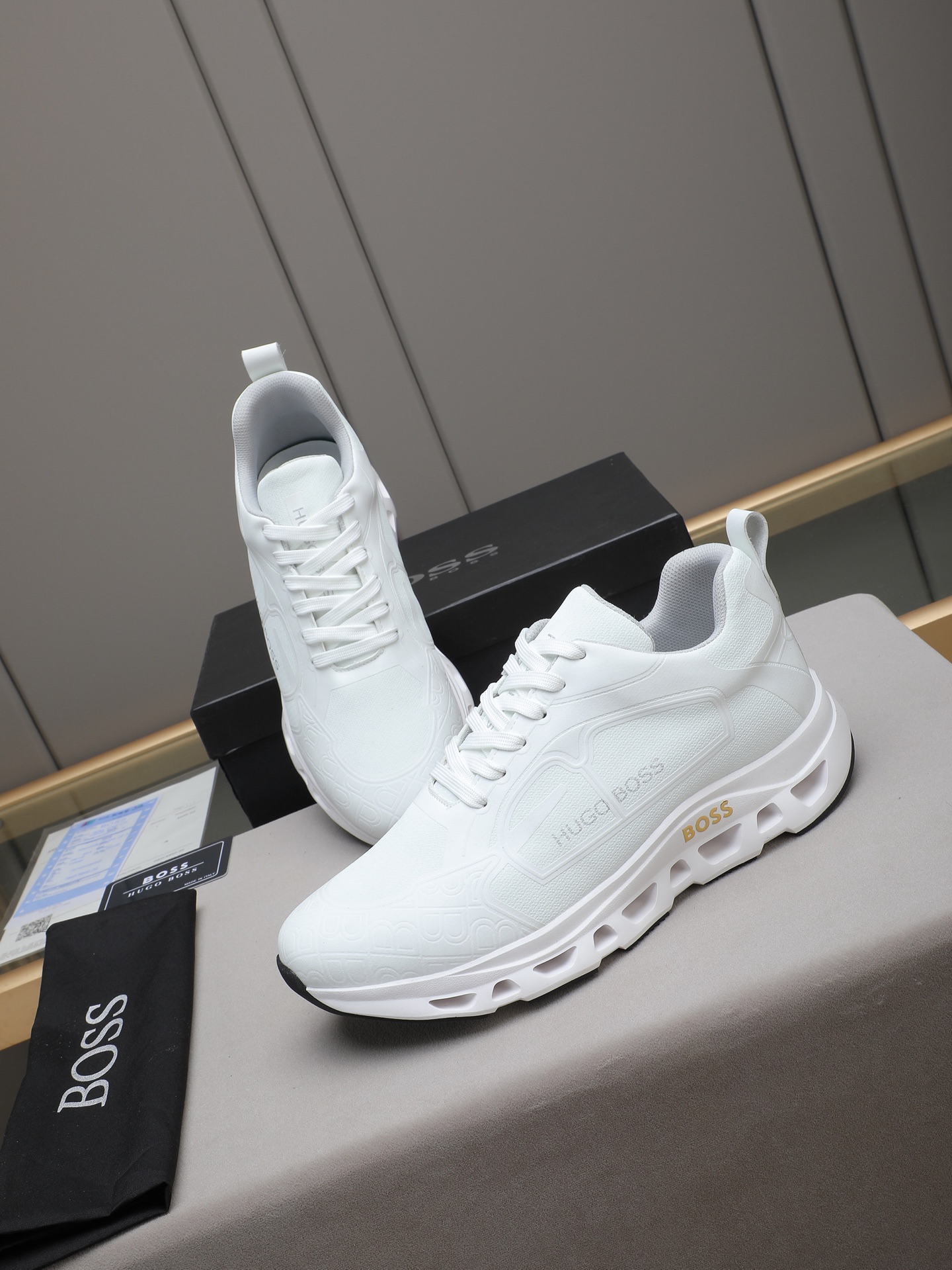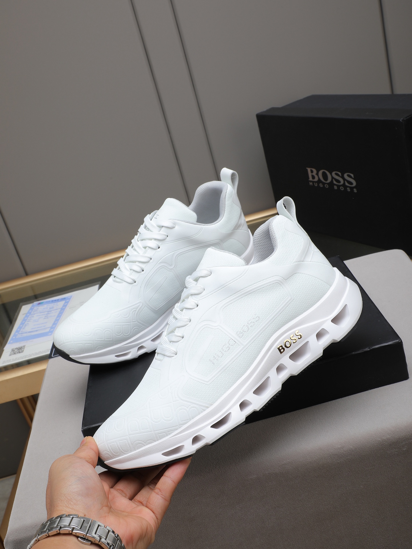 This shoes is AAAAA 1:1 quality (superb). Materials used are identical to the original ones. BOSS trademark marks are indistinguishable to the authentic. Photos take by actual shoes, what you receive will be 100% same with our photos.