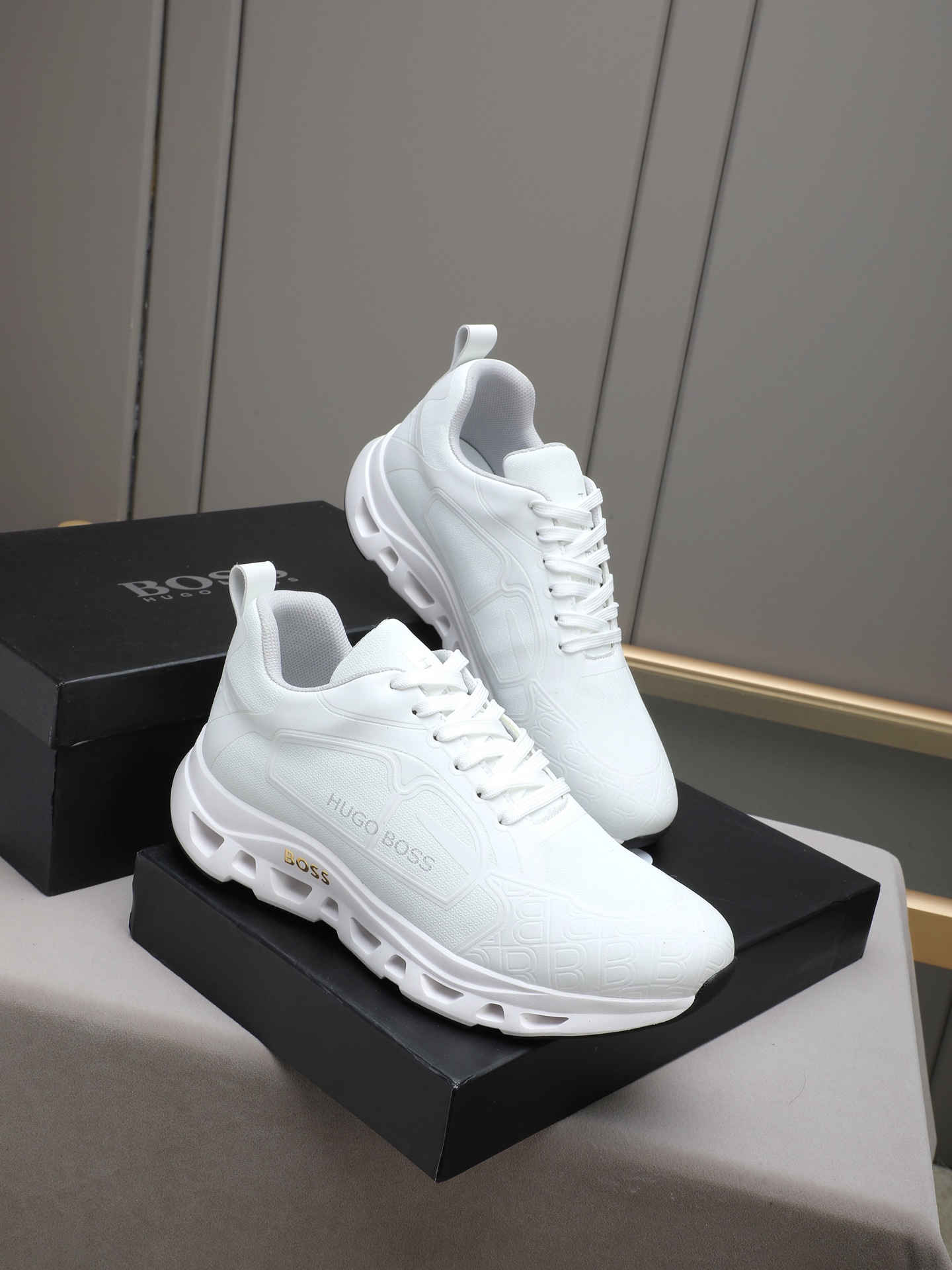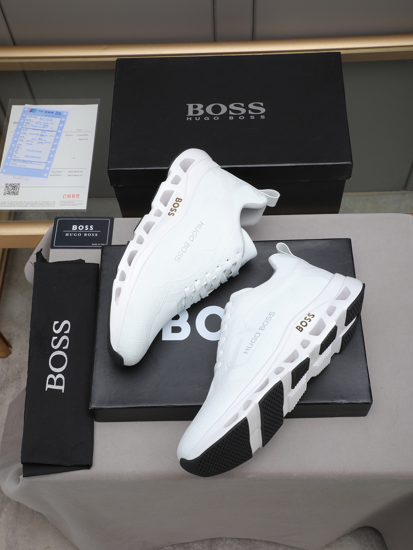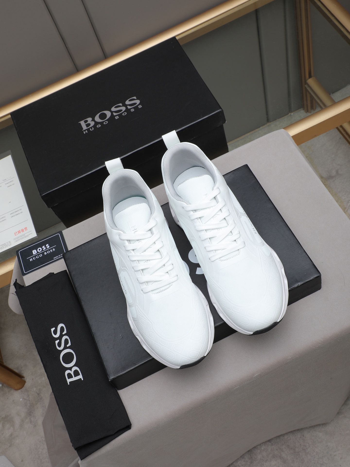 This shoes is AAAAA 1:1 quality (superb). Materials used are identical to the original ones. BOSS trademark marks are indistinguishable to the authentic. Photos take by actual shoes, what you receive will be 100% same with our photos.