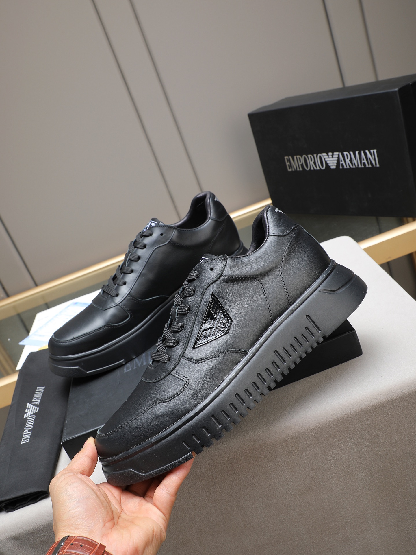 This shoes is AAAAA 1:1 quality (superb). Materials used are identical to the original ones. Armani trademark marks are indistinguishable to the authentic. Photos take by actual shoes, what you receive will be 100% same with our photos.