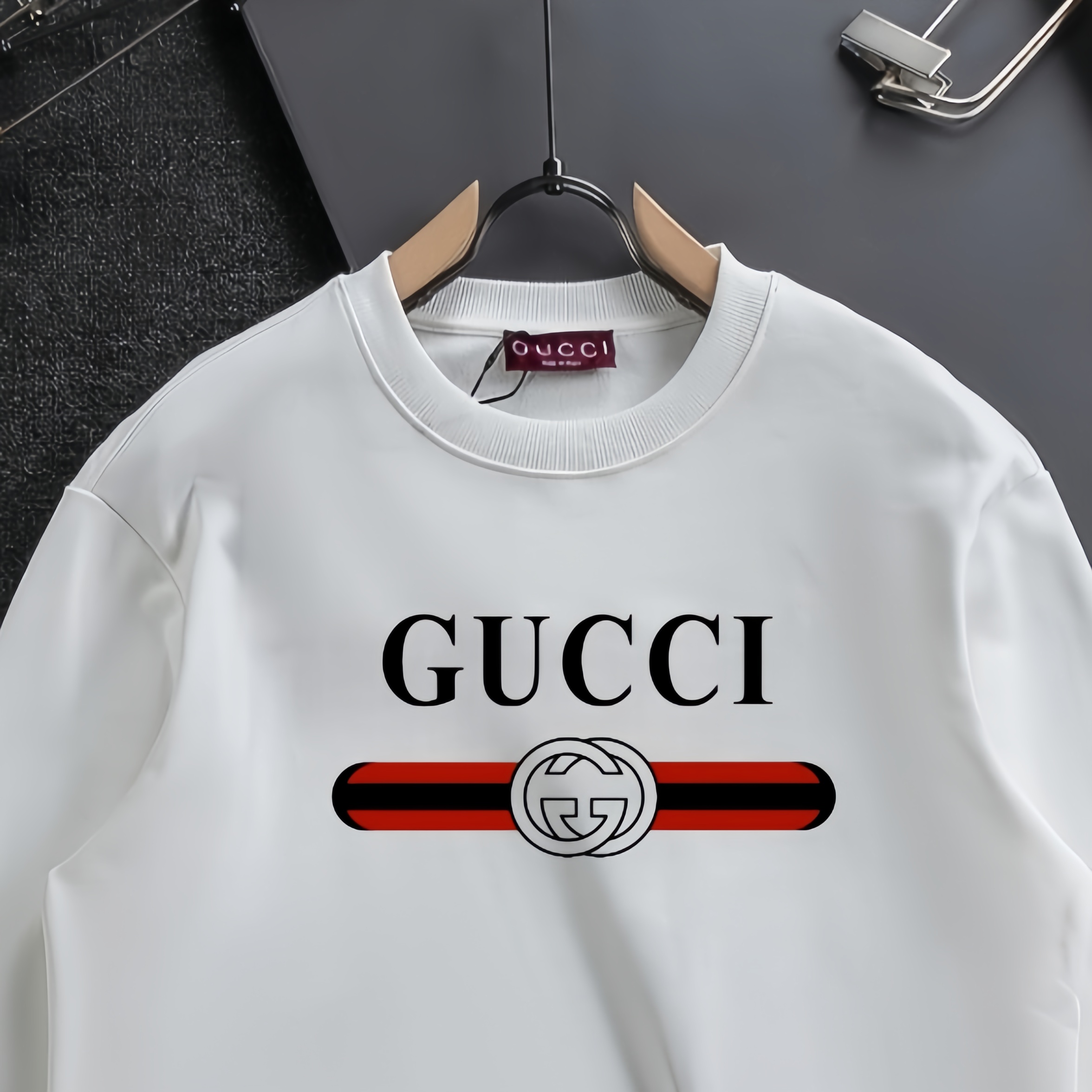 This clothes is AAAAA 1:1 quality (superb). Materials used are identical to the original ones. Gucci trademark marks are indistinguishable to the authentic. Photos take by actual clothes, what you receive will be 100% same with our photos.