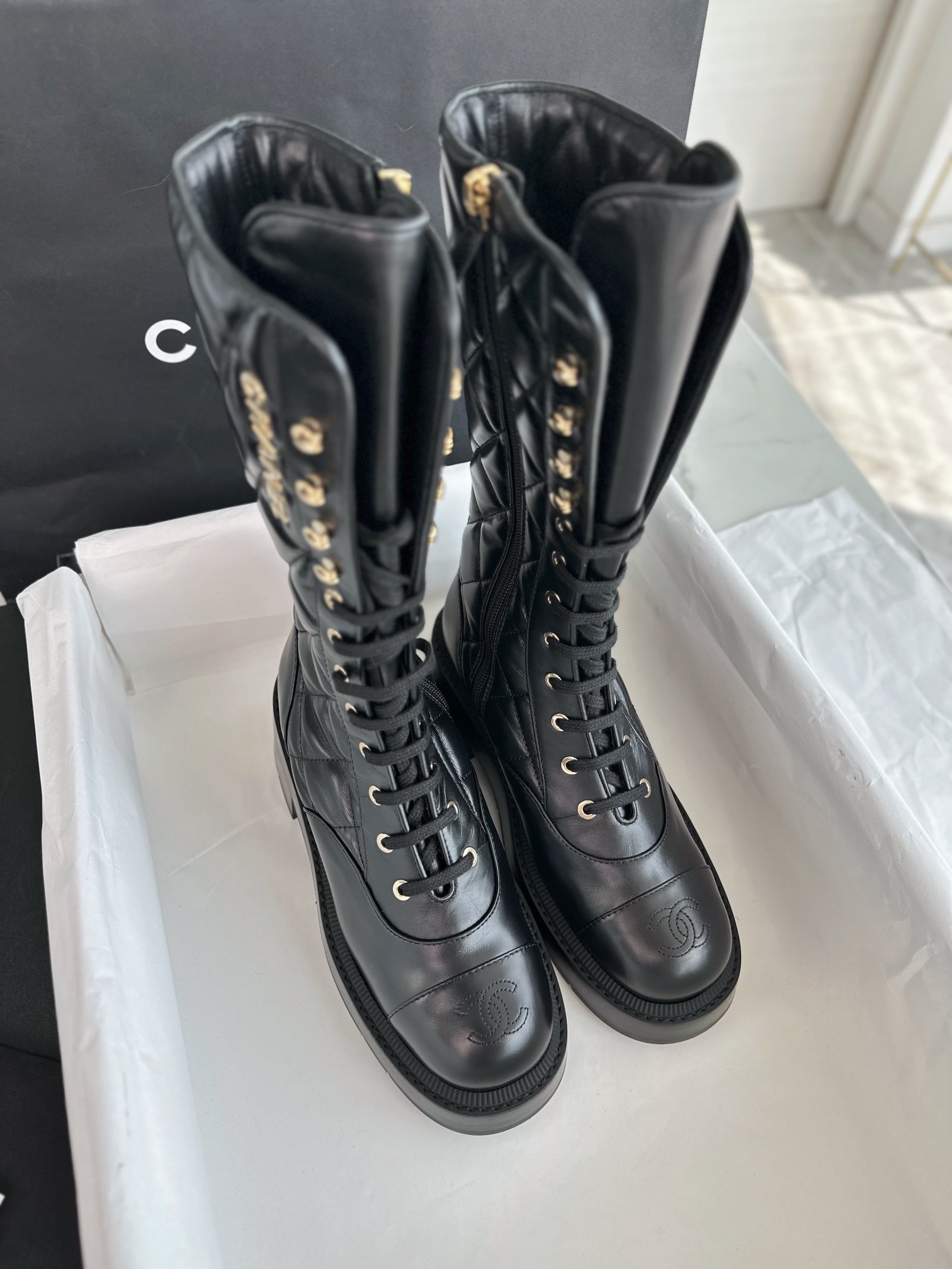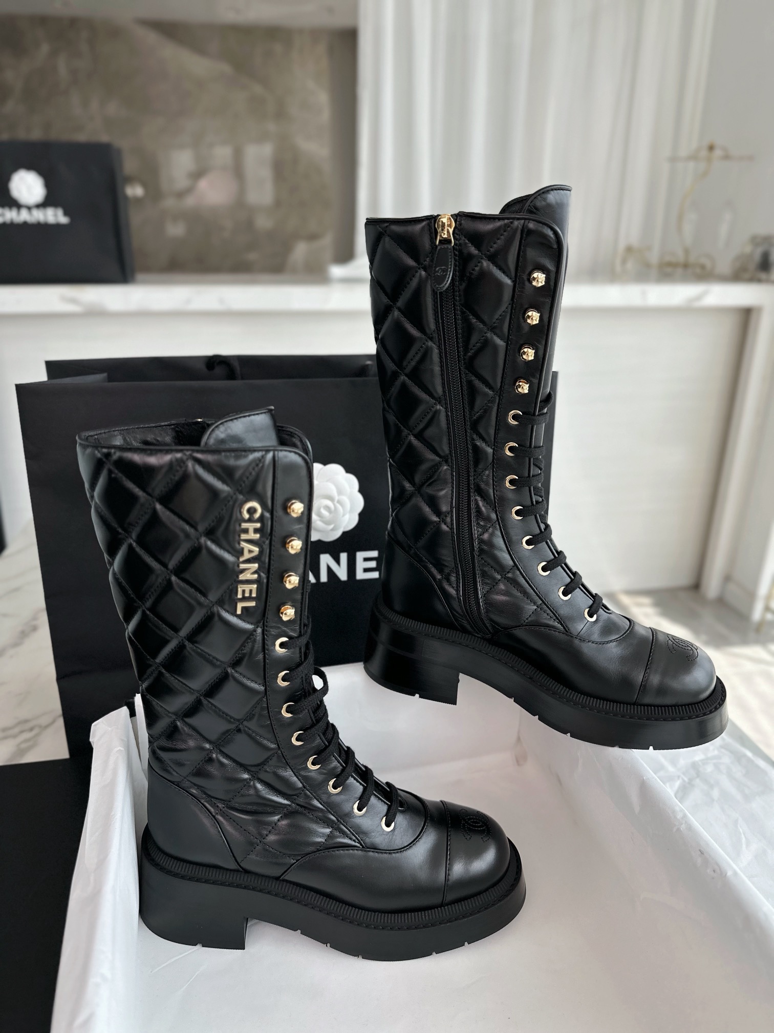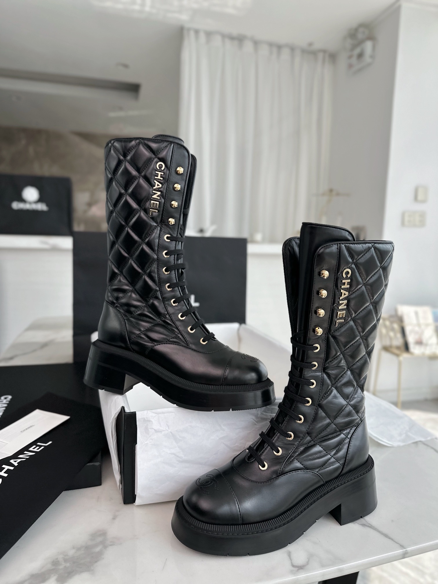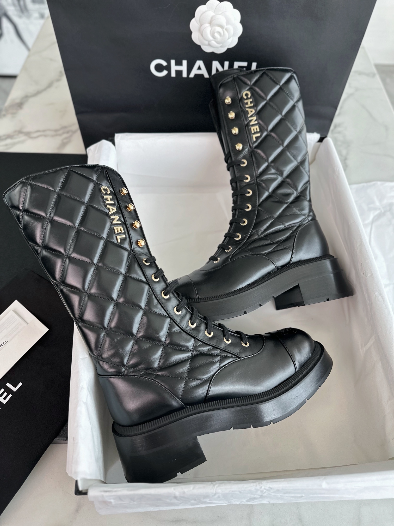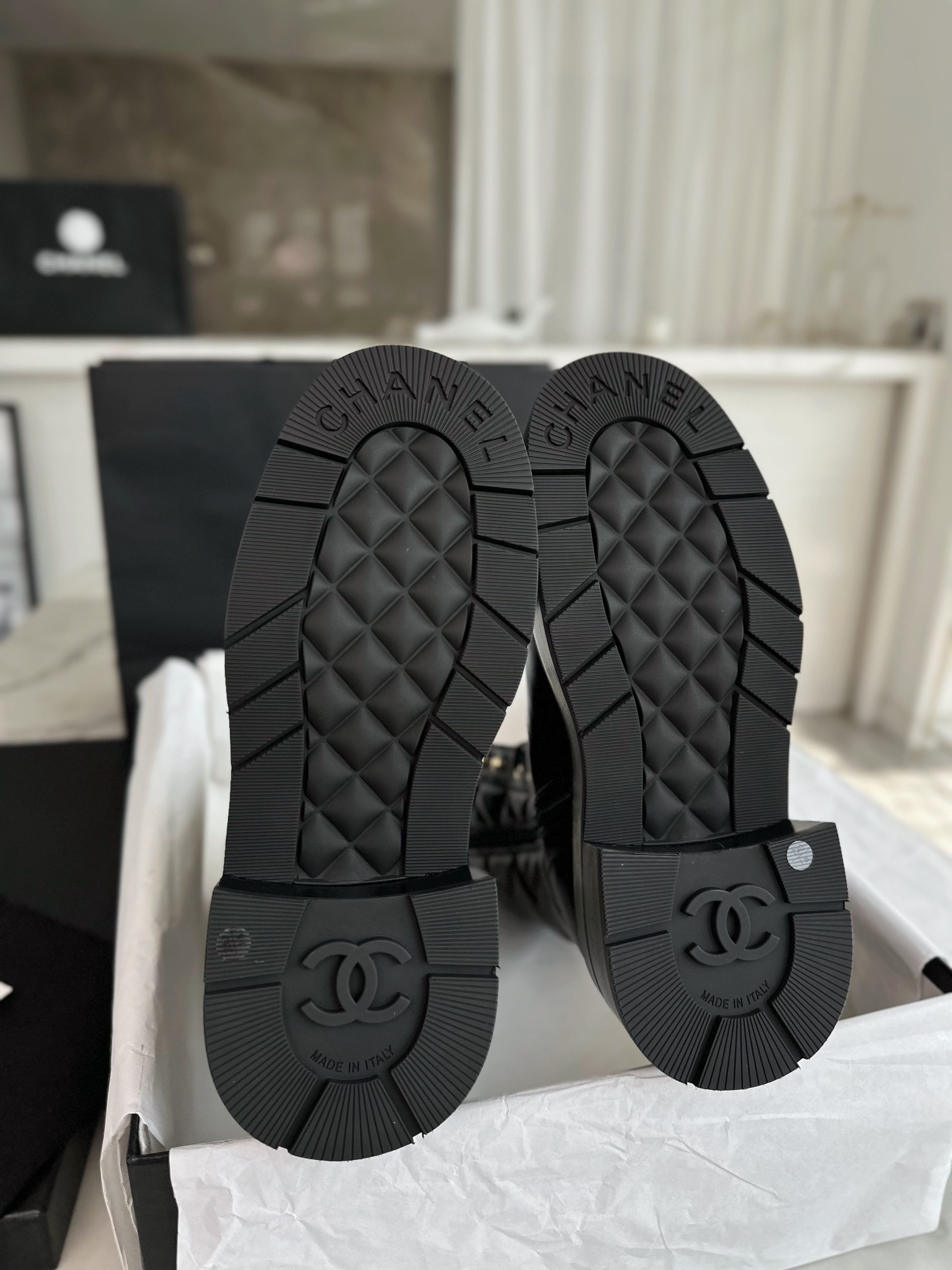 This shoes is AAAAA 1:1 quality (superb). Materials used are identical to the original ones. Chanel trademark marks are indistinguishable to the authentic. Photos take by actual shoes, what you receive will be 100% same with our photos.