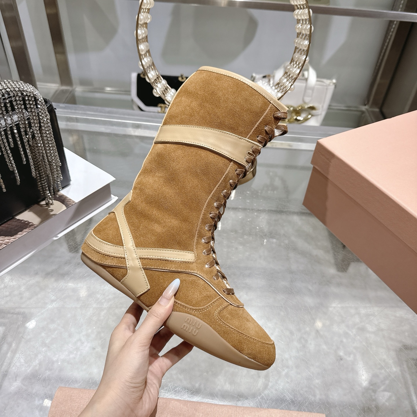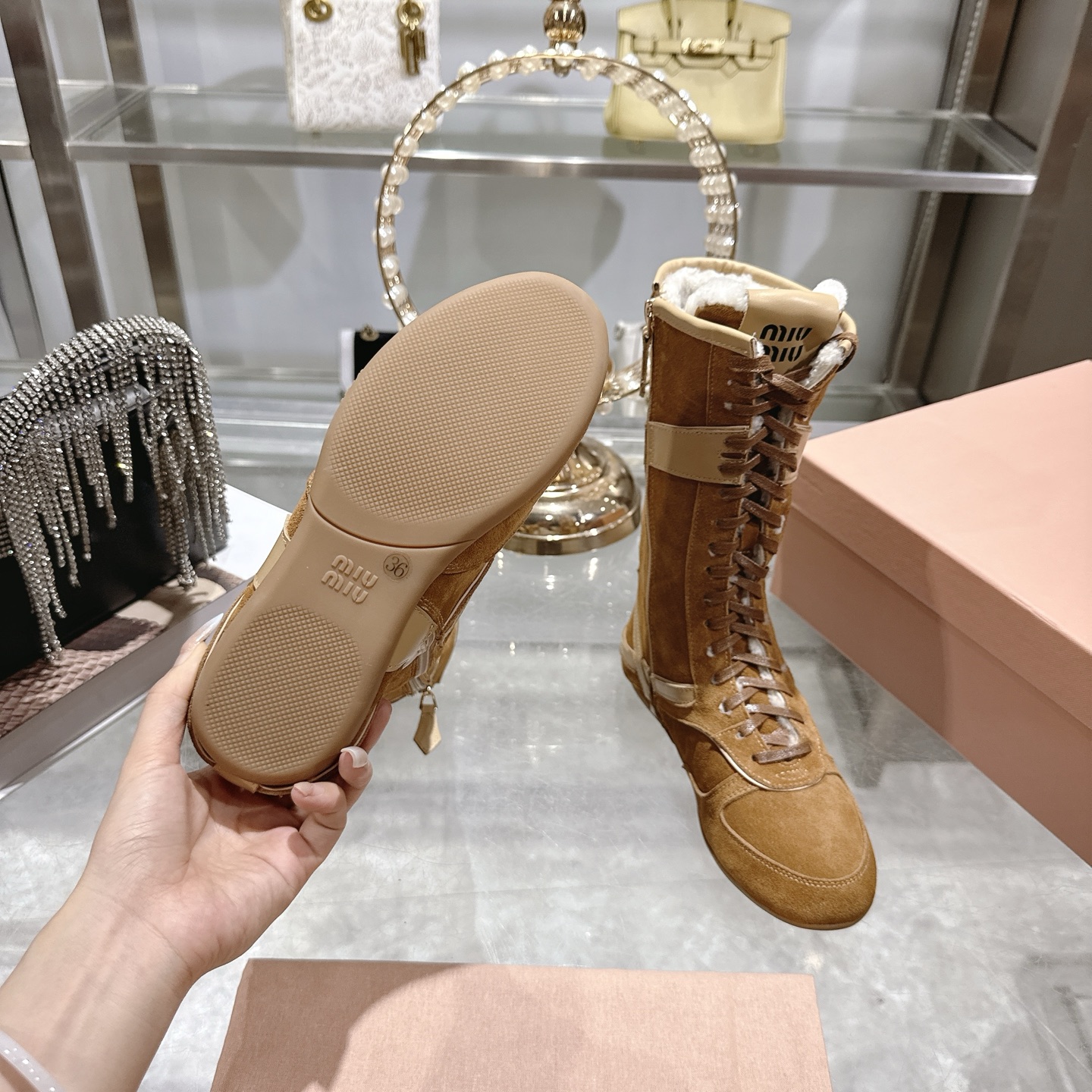 This shoes is AAAAA 1:1 quality (superb). Materials used are identical to the original ones. Miu Miu trademark marks are indistinguishable to the authentic. Photos take by actual shoes, what you receive will be 100% same with our photos.