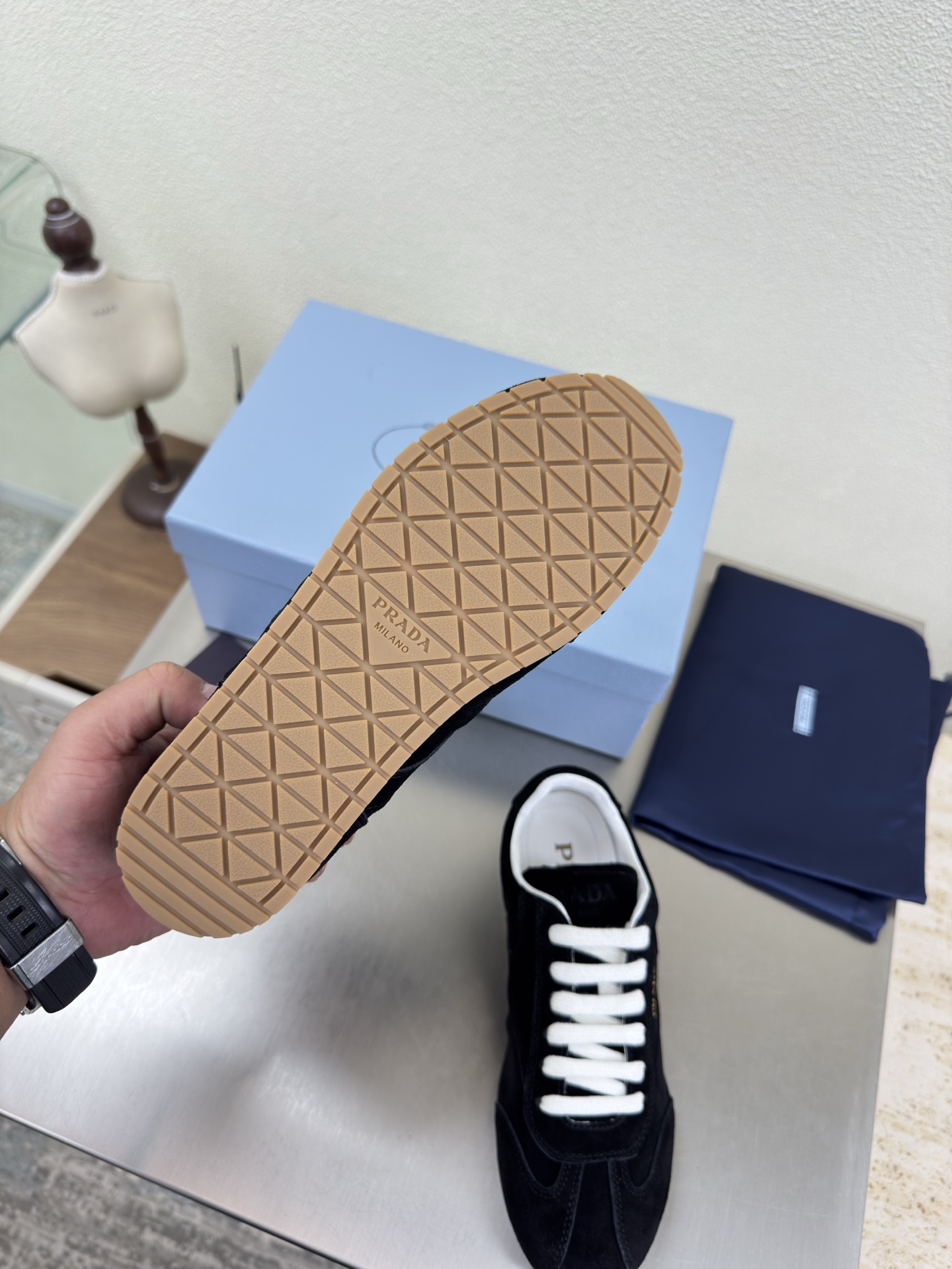 This shoes is AAAAA 1:1 quality (superb). Materials used are identical to the original ones. Prada trademark marks are indistinguishable to the authentic. Photos take by actual shoes, what you receive will be 100% same with our photos.