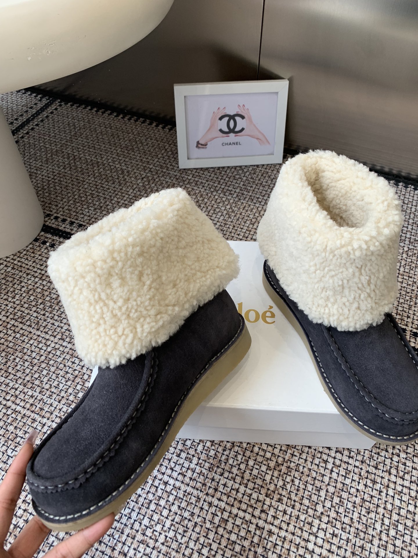 This shoes is AAAAA 1:1 quality (superb). Materials used are identical to the original ones. Chloe trademark marks are indistinguishable to the authentic. Photos take by actual shoes, what you receive will be 100% same with our photos.
