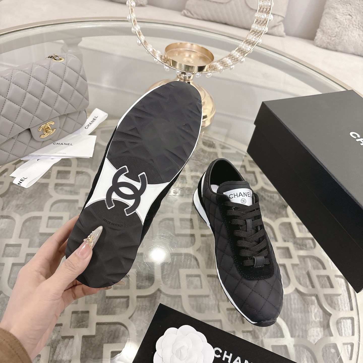 This shoes is AAAAA 1:1 quality (superb). Materials used are identical to the original ones. Chanel trademark marks are indistinguishable to the authentic. Photos take by actual shoes, what you receive will be 100% same with our photos.