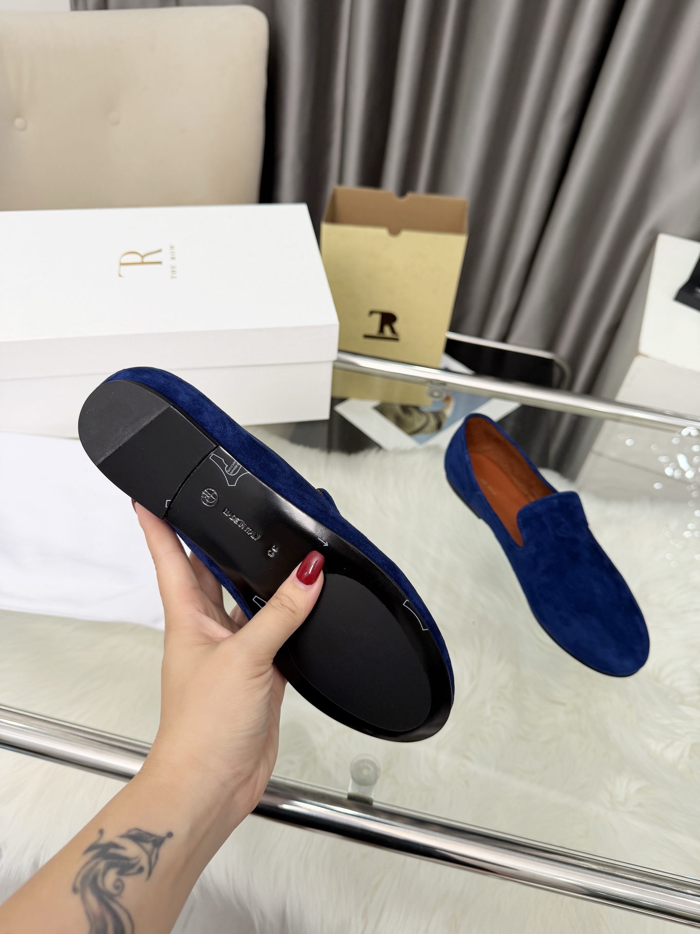 This shoes is AAAAA 1:1 quality (superb). Materials used are identical to the original ones. The Row trademark marks are indistinguishable to the authentic. Photos take by actual shoes, what you receive will be 100% same with our photos.