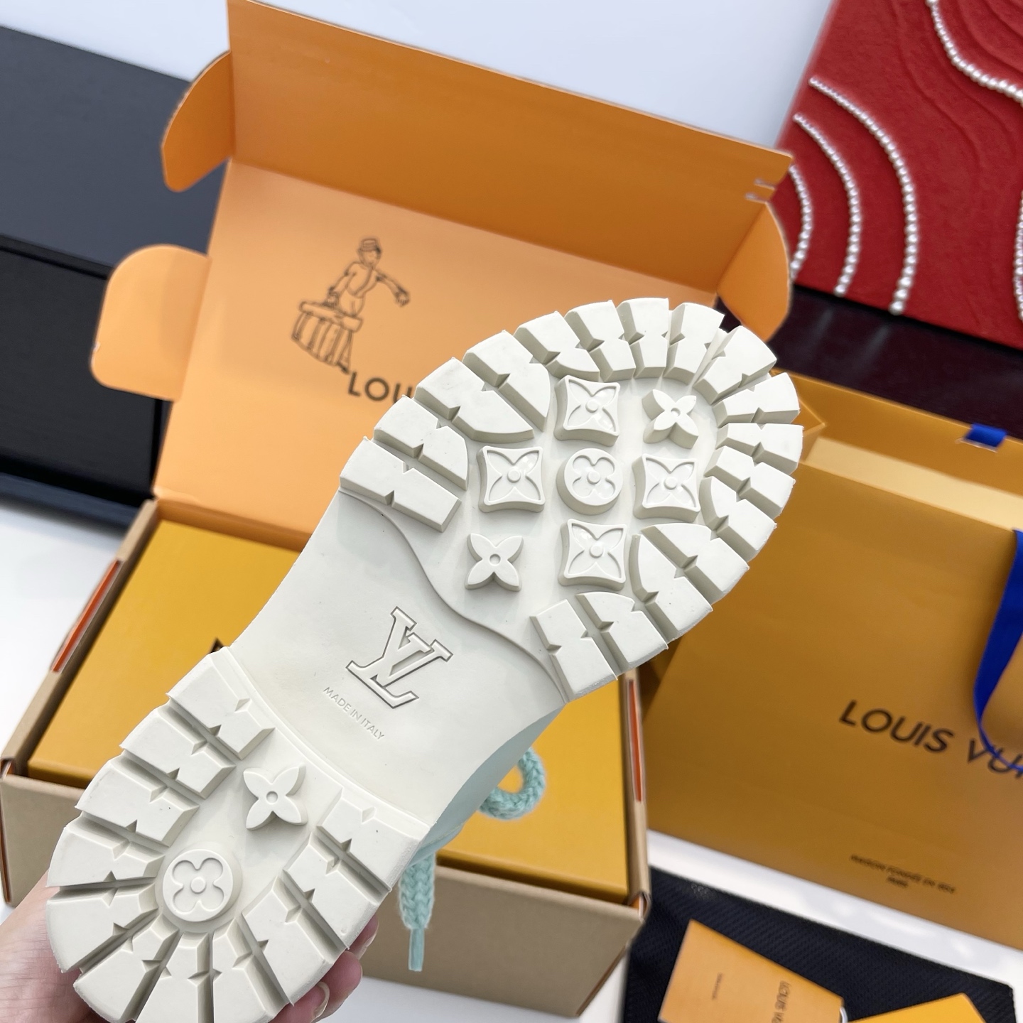 This shoes is AAAAA 1:1 quality (superb). Materials used are identical to the original ones. Louis Vuitton trademark marks are indistinguishable to the authentic. Photos take by actual shoes, what you receive will be 100% same with our photos.