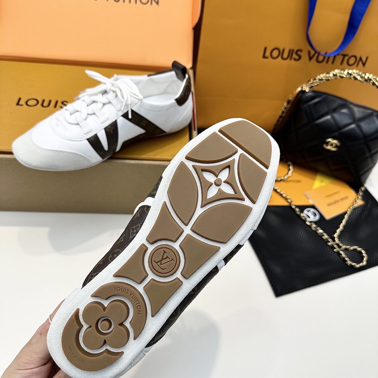 This shoes is AAAAA 1:1 quality (superb). Materials used are identical to the original ones. Louis Vuitton trademark marks are indistinguishable to the authentic. Photos take by actual shoes, what you receive will be 100% same with our photos.