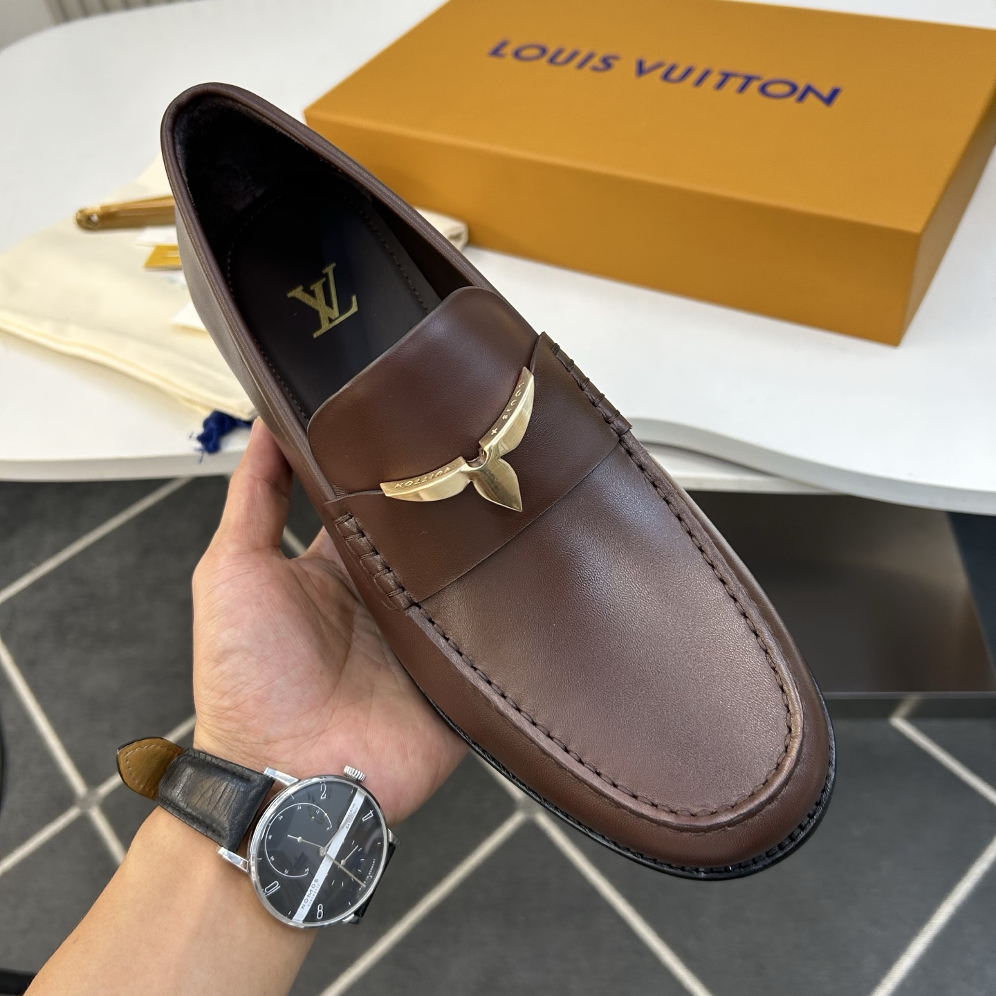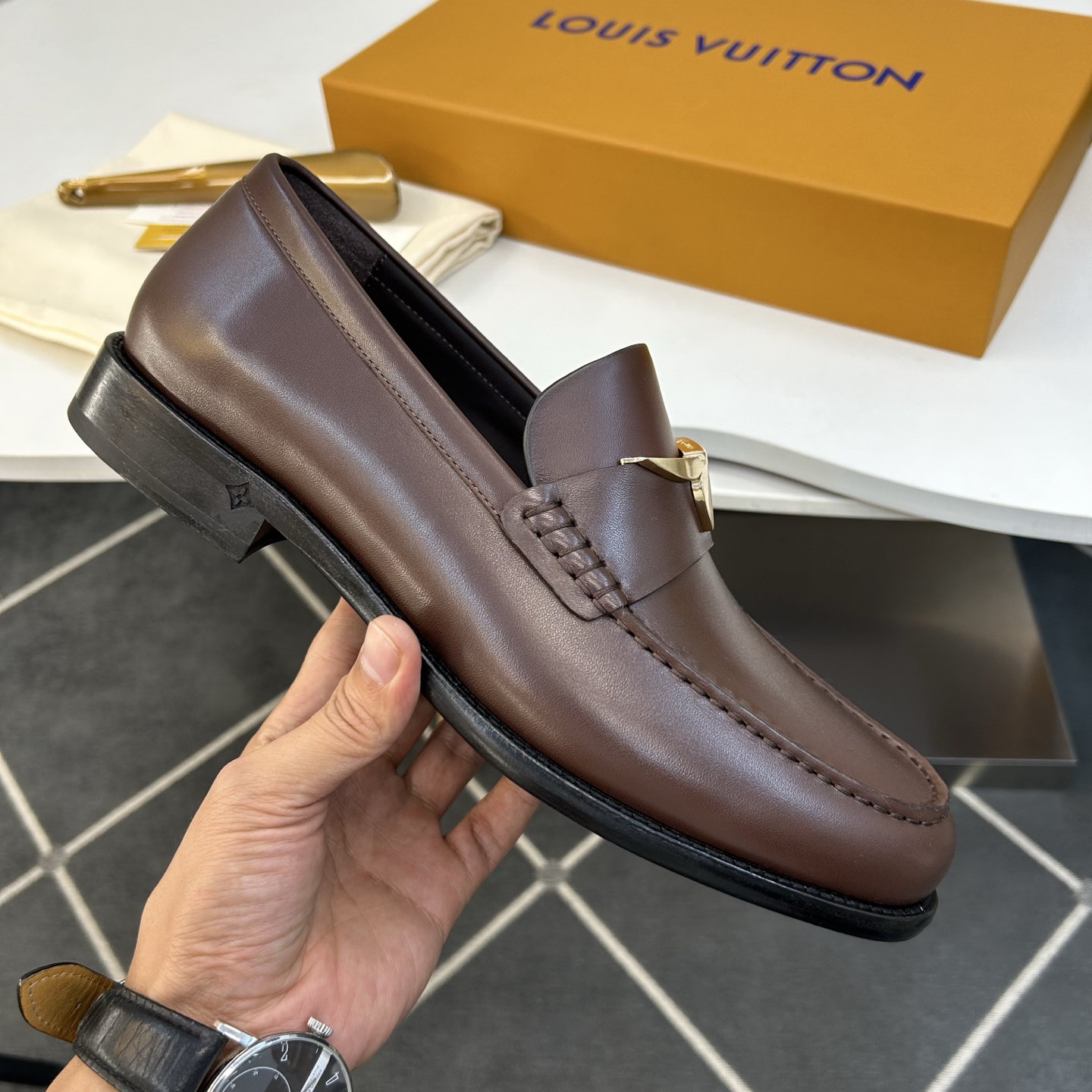 This shoes is AAAAA 1:1 quality (superb). Materials used are identical to the original ones. Louis Vuitton trademark marks are indistinguishable to the authentic. Photos take by actual shoes, what you receive will be 100% same with our photos.