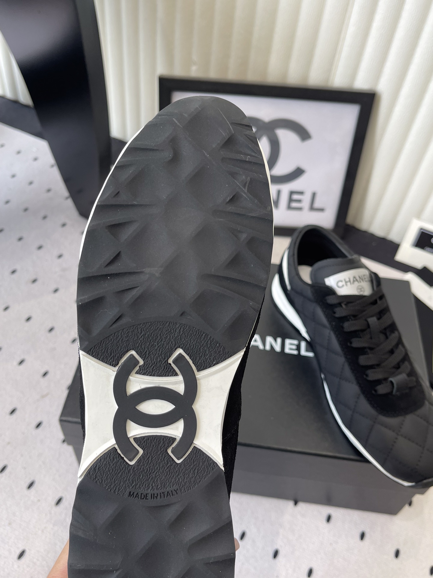 This shoes is AAAAA 1:1 quality (superb). Materials used are identical to the original ones. Chanel trademark marks are indistinguishable to the authentic. Photos take by actual shoes, what you receive will be 100% same with our photos.
