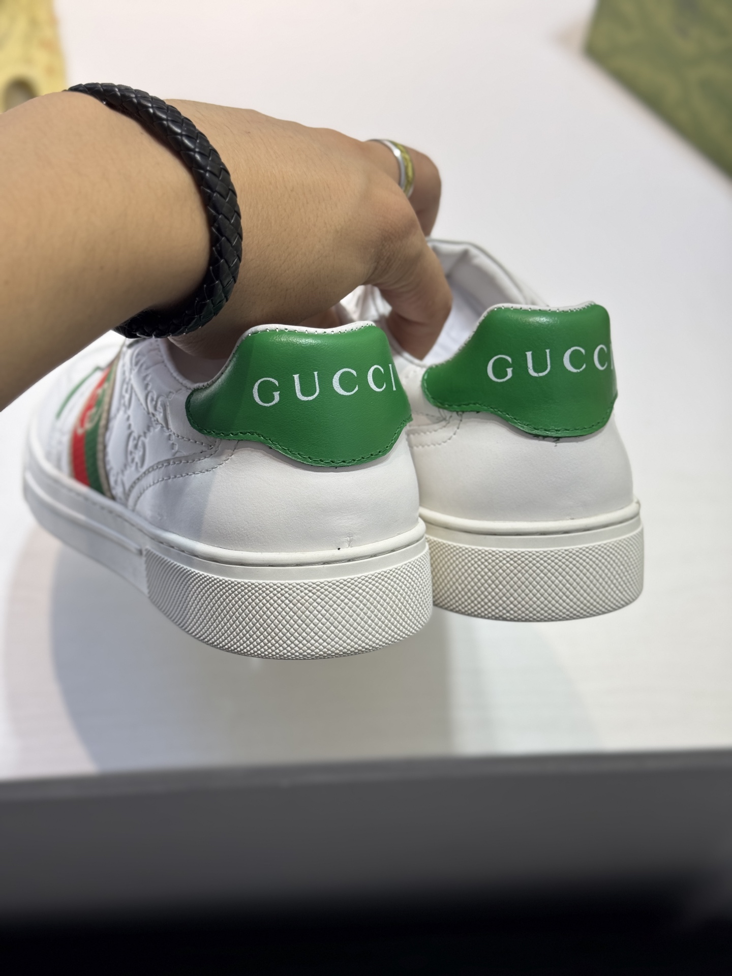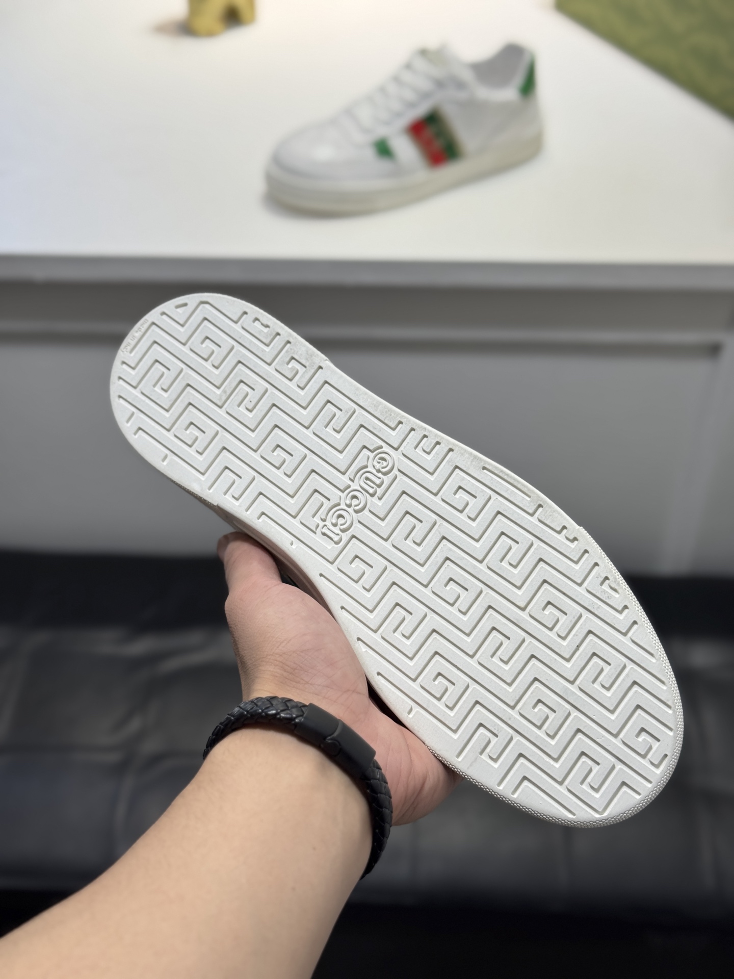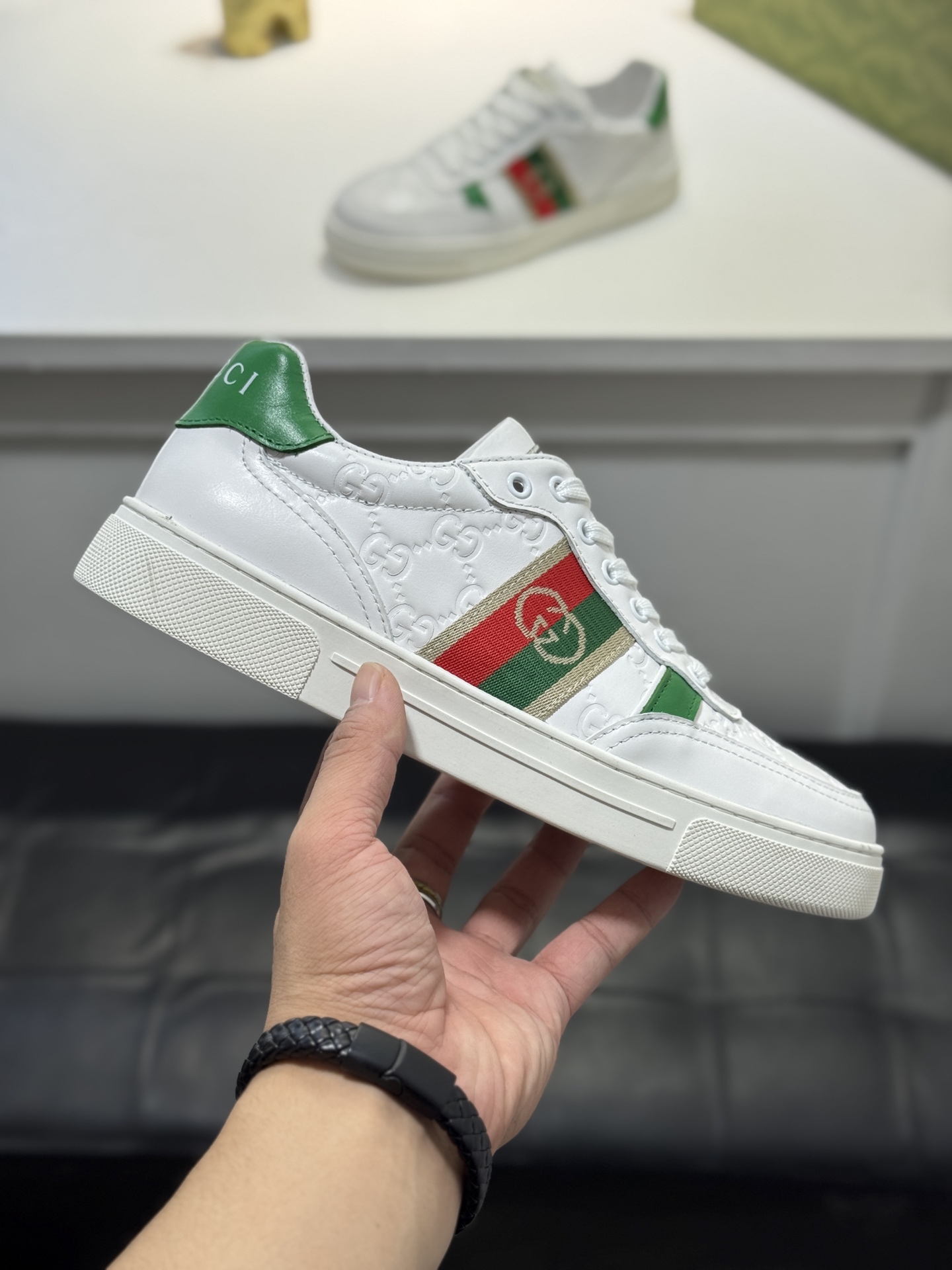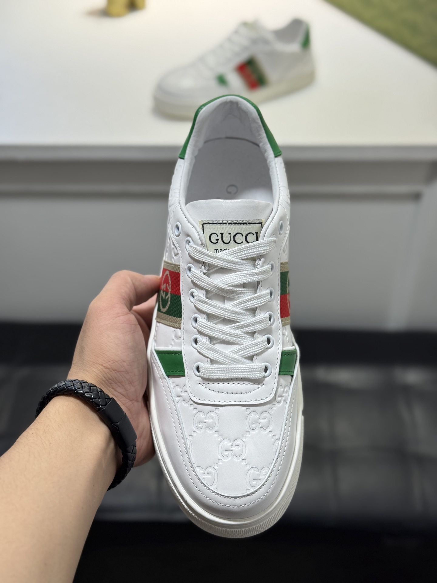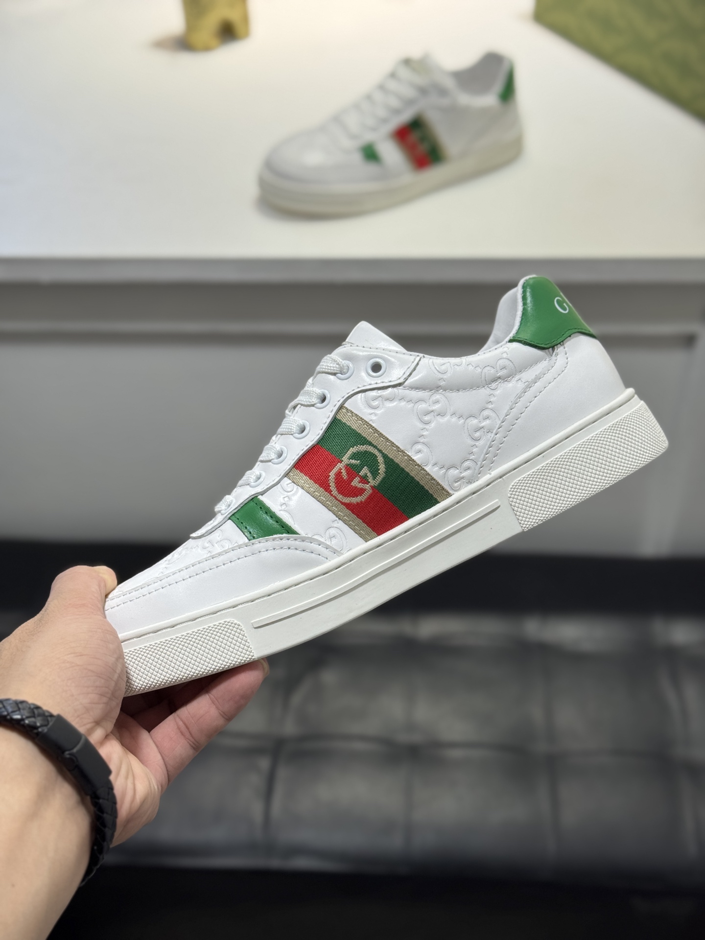 This shoes is AAAAA 1:1 quality (superb). Materials used are identical to the original ones. Gucci trademark marks are indistinguishable to the authentic. Photos take by actual shoes, what you receive will be 100% same with our photos.