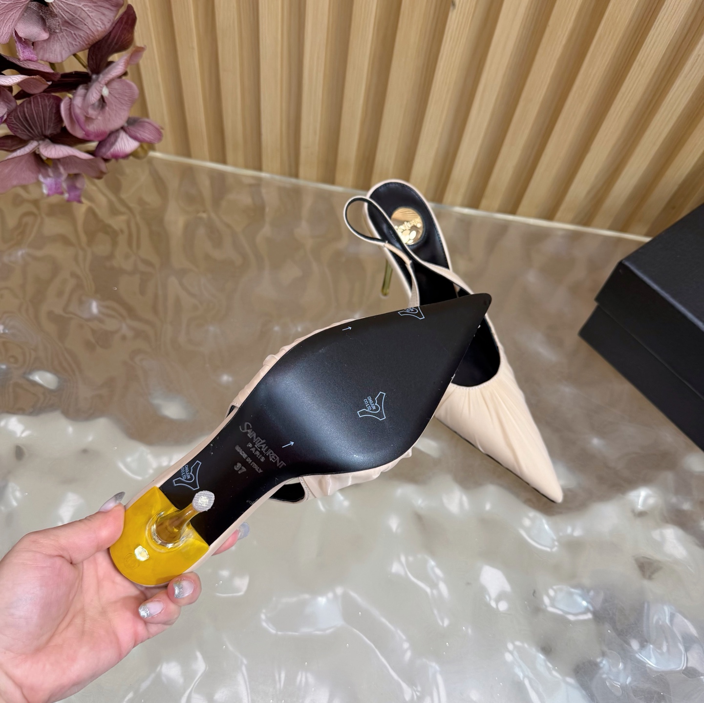 This shoes is AAAAA 1:1 quality (superb). Materials used are identical to the original ones. Saint Laurent trademark marks are indistinguishable to the authentic. Photos take by actual shoes, what you receive will be 100% same with our photos.