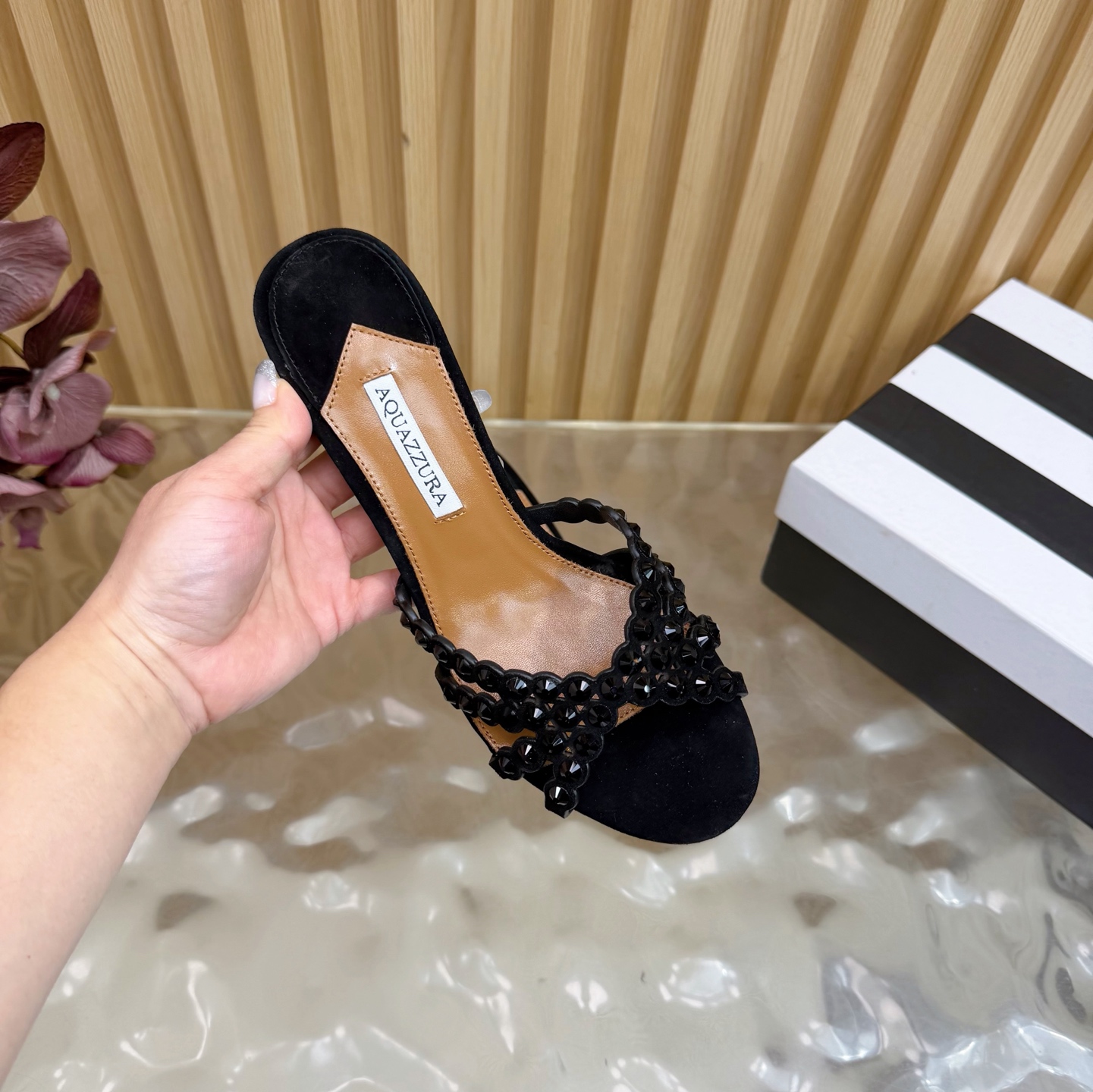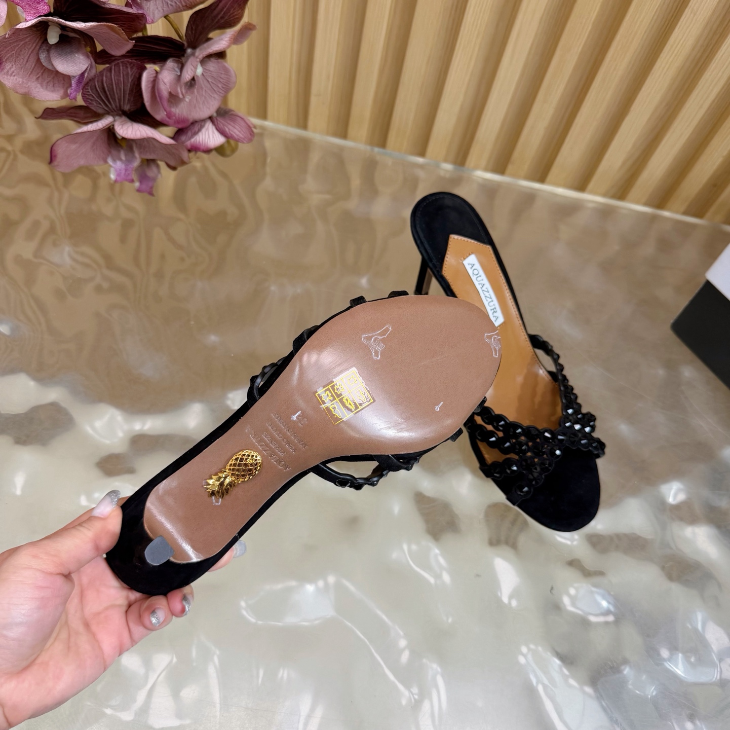 This shoes is AAAAA 1:1 quality (superb). Materials used are identical to the original ones. Aquazzura trademark marks are indistinguishable to the authentic. Photos take by actual shoes, what you receive will be 100% same with our photos.