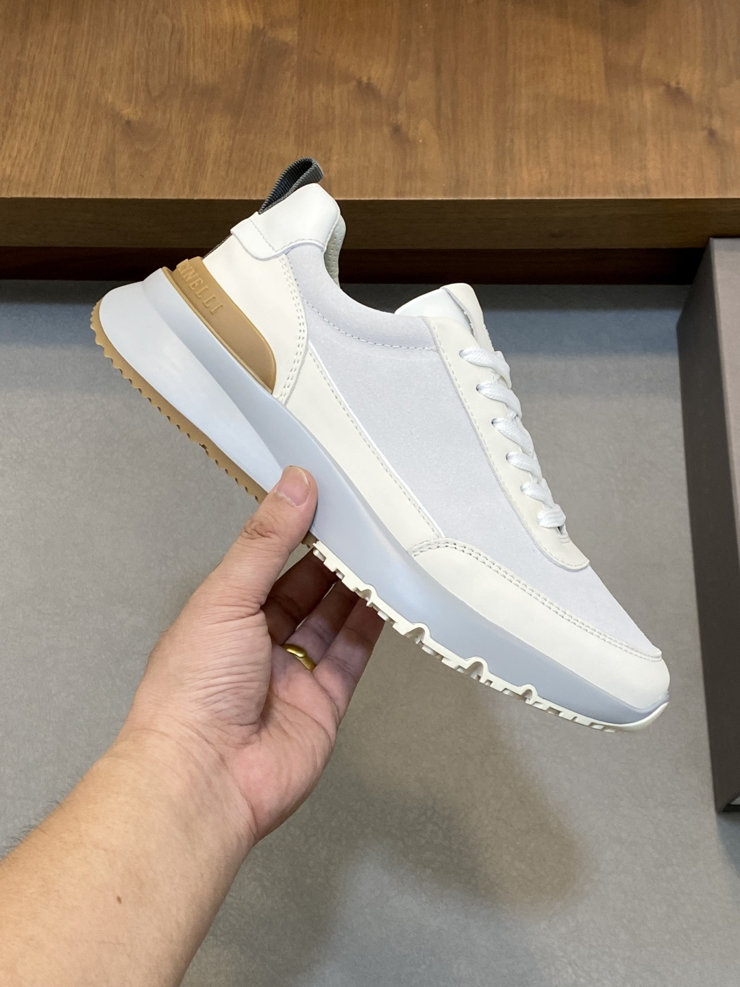 This shoes is AAAAA 1:1 quality (superb). Materials used are identical to the original ones. Brunello Cucinelli trademark marks are indistinguishable to the authentic. Photos take by actual shoes, what you receive will be 100% same with our photos.