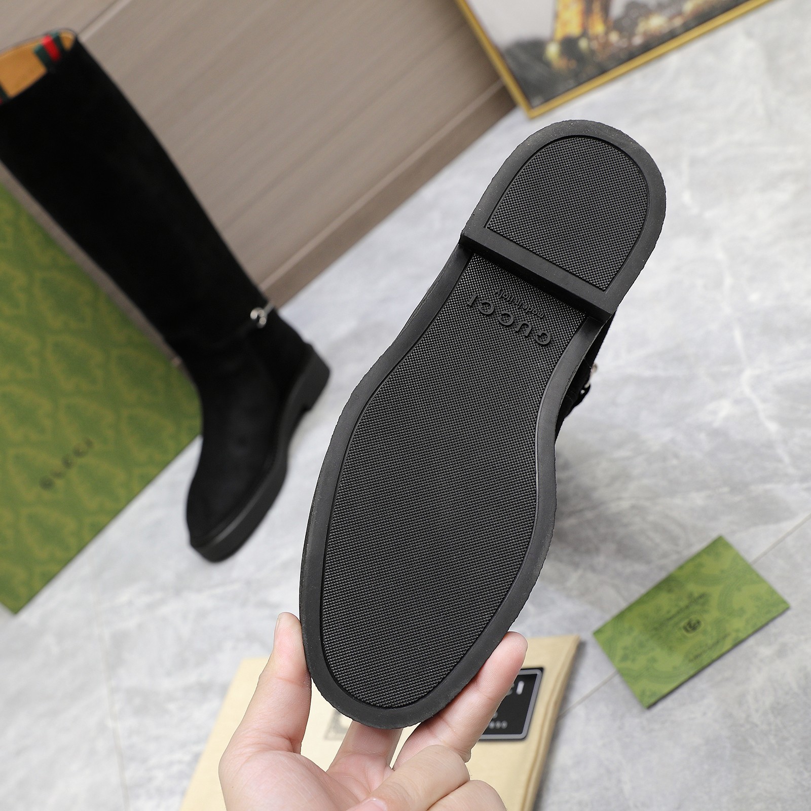 This shoes is AAAAA 1:1 quality (superb). Materials used are identical to the original ones. Gucci trademark marks are indistinguishable to the authentic. Photos take by actual shoes, what you receive will be 100% same with our photos.