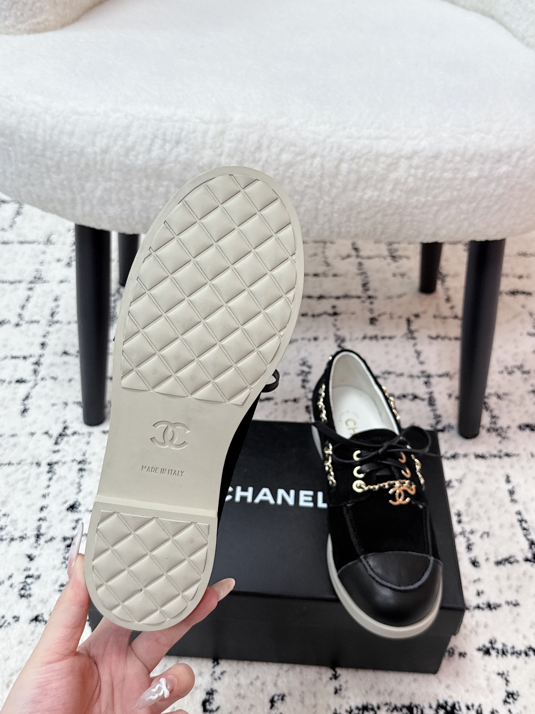 This shoes is AAAAA 1:1 quality (superb). Materials used are identical to the original ones. Chanel trademark marks are indistinguishable to the authentic. Photos take by actual shoes, what you receive will be 100% same with our photos.
