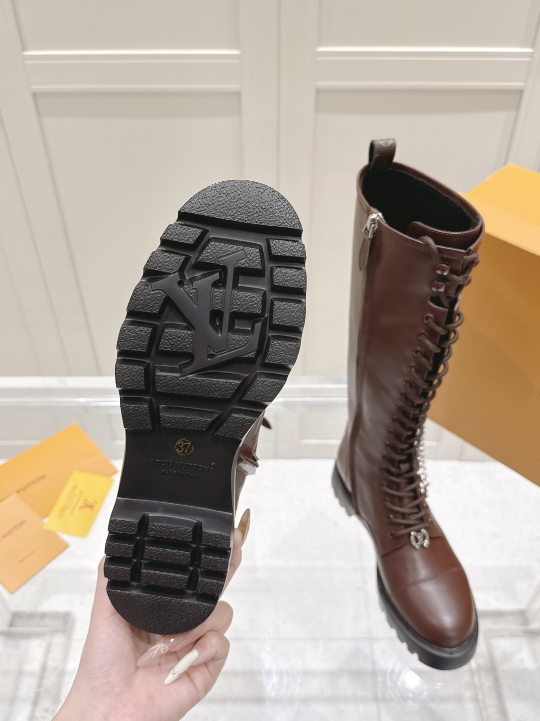 This shoes is AAAAA 1:1 quality (superb). Materials used are identical to the original ones. Louis Vuitton trademark marks are indistinguishable to the authentic. Photos take by actual shoes, what you receive will be 100% same with our photos.