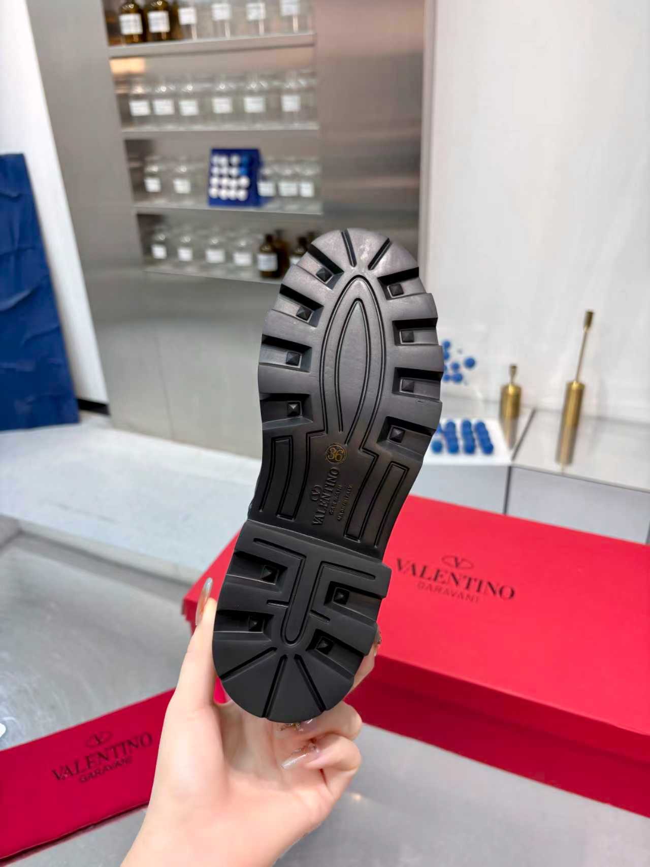 This shoes is AAAAA 1:1 quality (superb). Materials used are identical to the original ones. Valentino trademark marks are indistinguishable to the authentic. Photos take by actual shoes, what you receive will be 100% same with our photos.