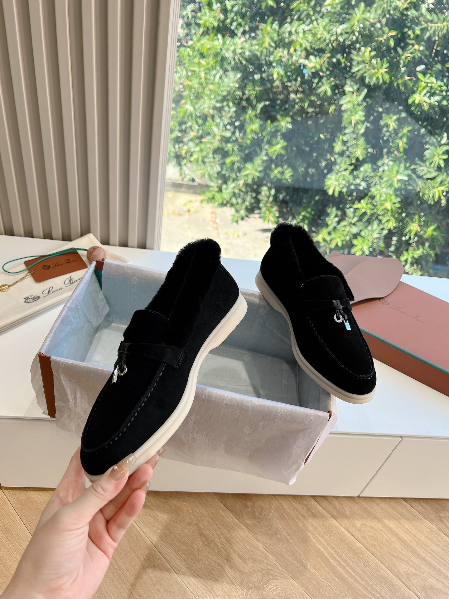 This shoes is AAAAA 1:1 quality (superb). Materials used are identical to the original ones. Loro Piana trademark marks are indistinguishable to the authentic. Photos take by actual shoes, what you receive will be 100% same with our photos.