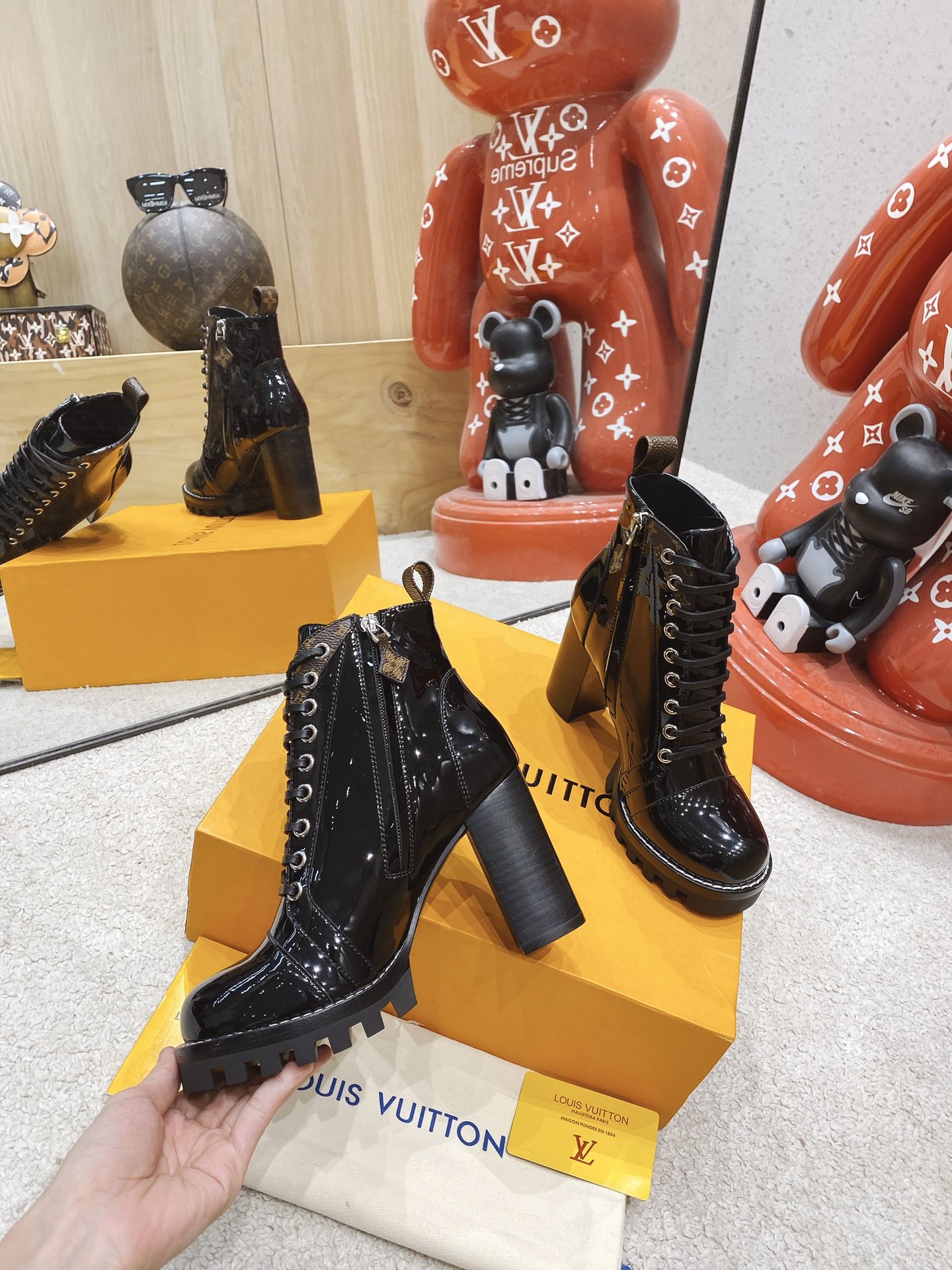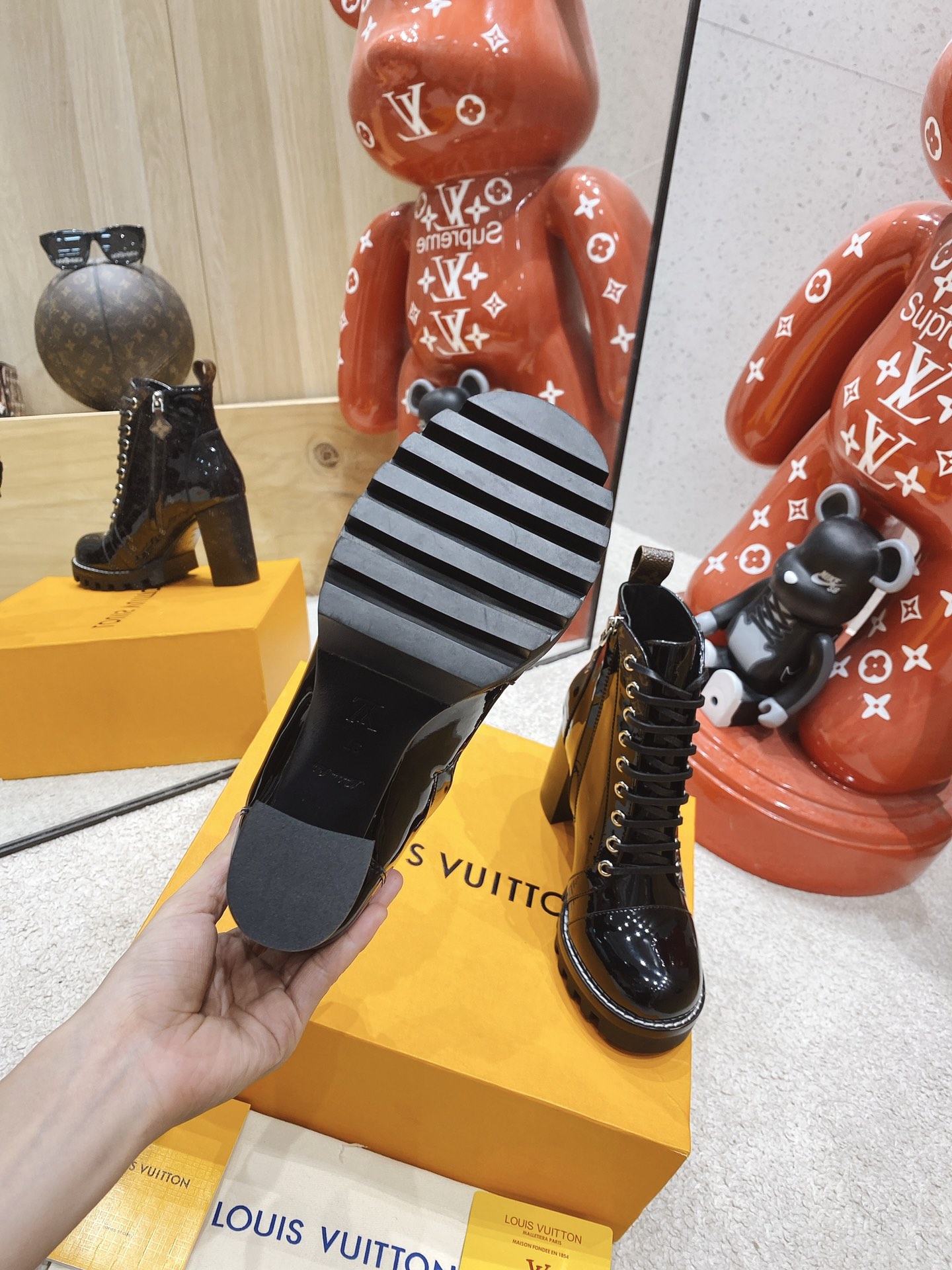 This shoes is AAAAA 1:1 quality (superb). Materials used are identical to the original ones. Louis Vuitton trademark marks are indistinguishable to the authentic. Photos take by actual shoes, what you receive will be 100% same with our photos.